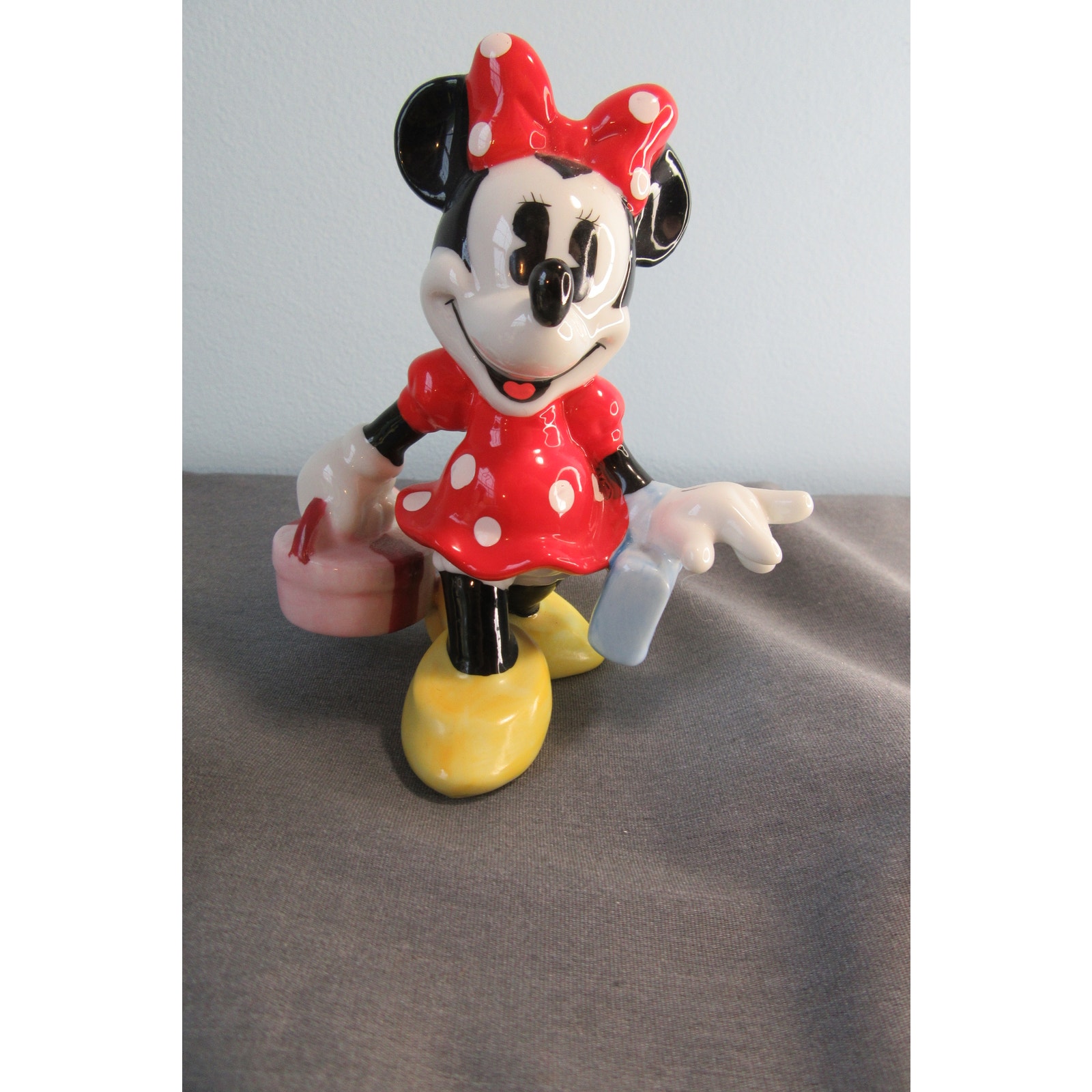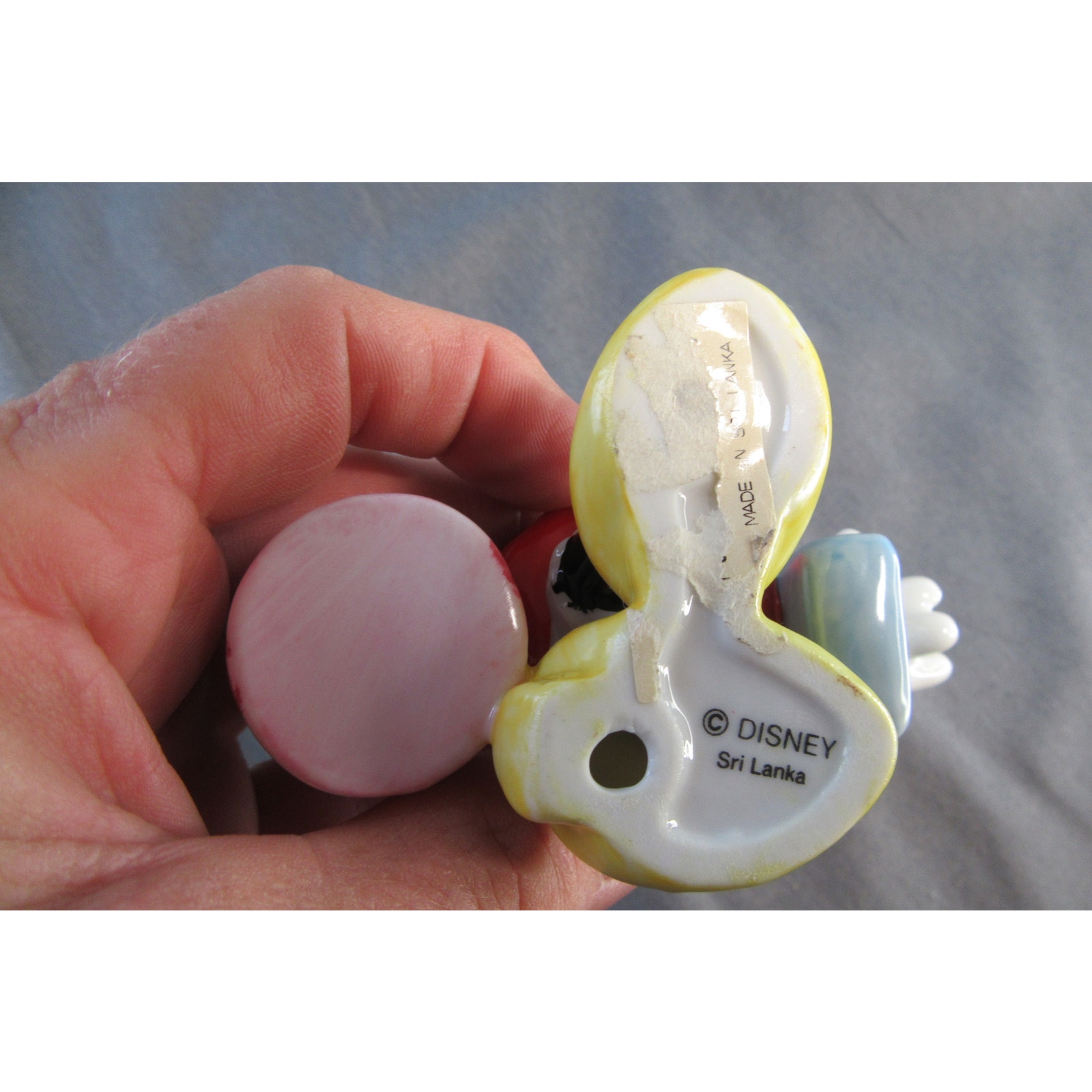 Vintage Disney Ceramic Figurines Minnie Mouse Goofy Donald Duck. All in excellent shape bright clear colors and no visible crack's chips or stains. Goofy and Minnie stand 4 inches tall and Donald is 3 inches tall. Minnie made in Sri Lanka, Goofy and Donald in China.