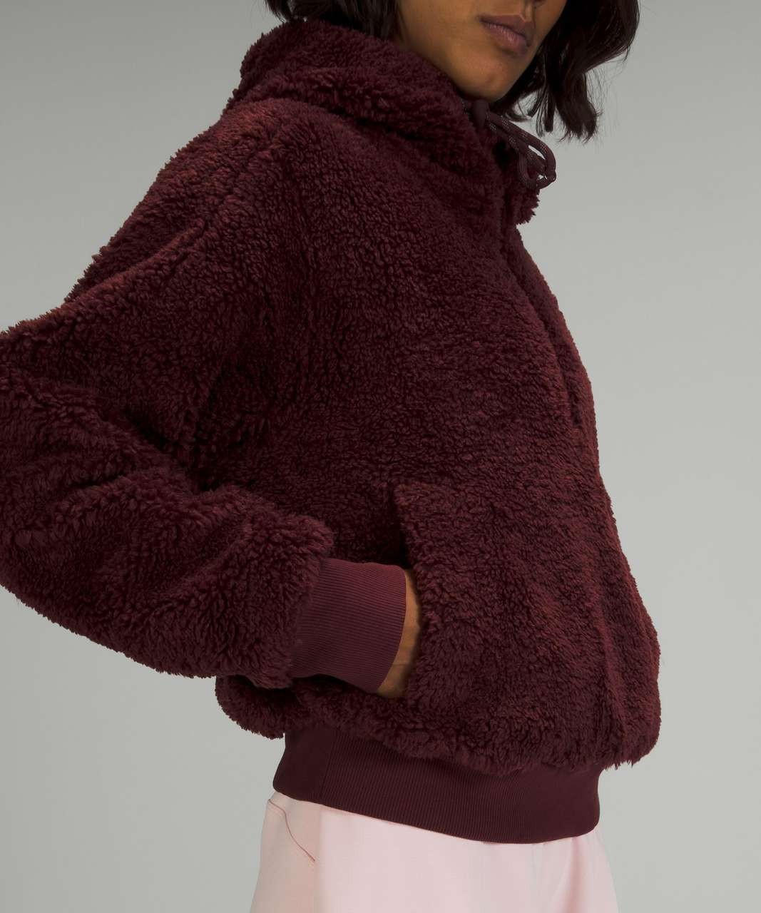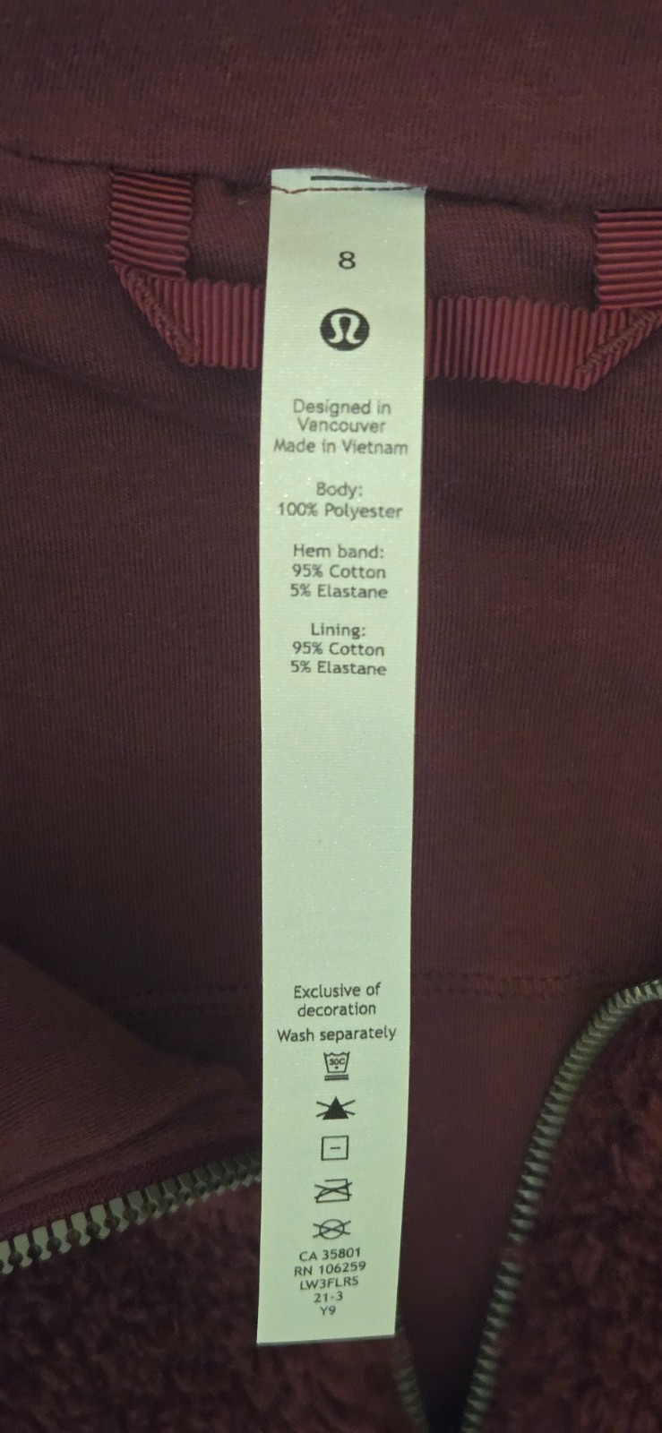 The Lululemon Textured Fleece 1/2 Half Zip Hoodie in Red Merlot, size 8, is a stylish pullover designed for active women. Made from cozy cotton fleece, this hoodie features a solid maroon color with a relaxed fit for comfort during workouts. The long sleeves and 1/2 zip closure add practicality to the design, making it perfect for various occasions while maintaining a fashionable look. With the Lululemon brand name known for high-quality activewear, this hoodie is sure to be a versatile and essential addition to any wardrobe.