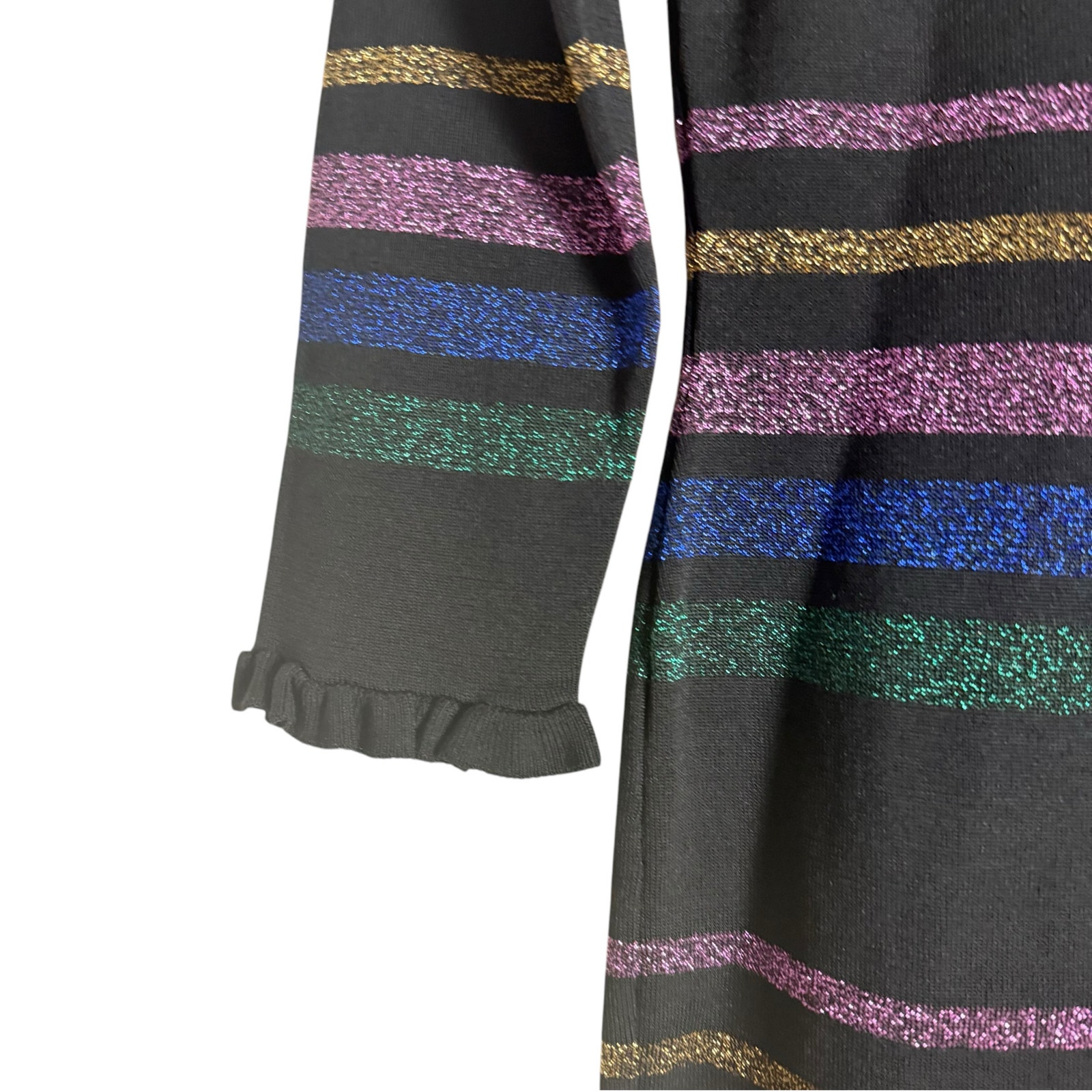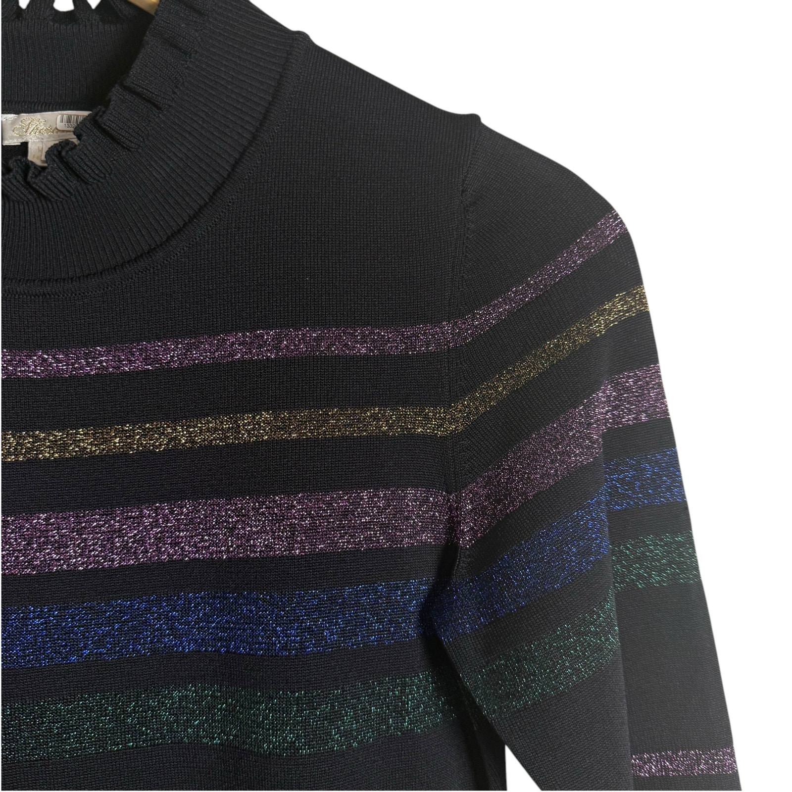 Shoshanna Evette Black Striped Knit Long Sleeve Ruffle Mock Neck Sweater Dress S