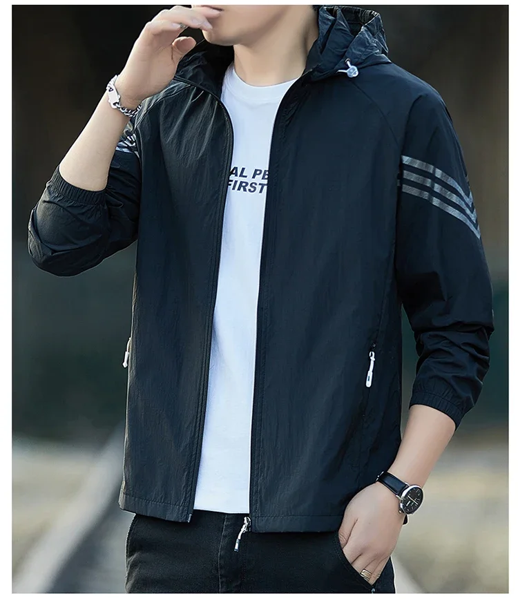 UPF50+Sunscreen Jacket 2025 Summer Thin Breathable Outdoor Cycling Sports Ice Silk Cardigan Coat Casual Men's Sunscreen Clothing