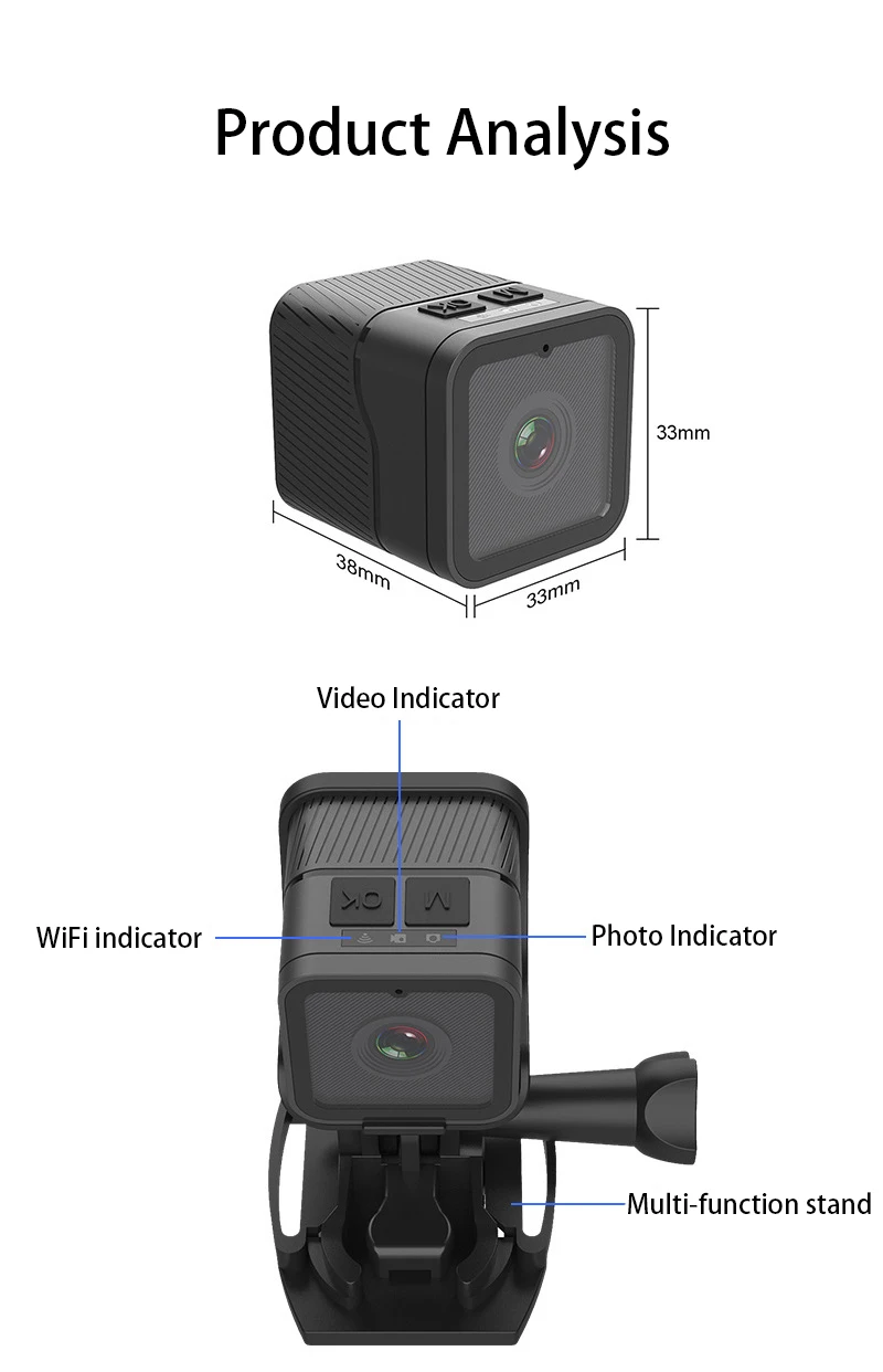 1. High definition sports WIFI camera, WIFI transmission 2.4G, can achieve waterproof life, outdoor cycling VLOG recording, and high-definition picture quality during cycling.