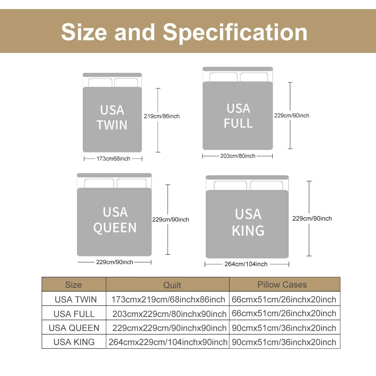 Twin Size: 1 Comforter: 68""x86""; 2 Pillow shams: 20""x26"