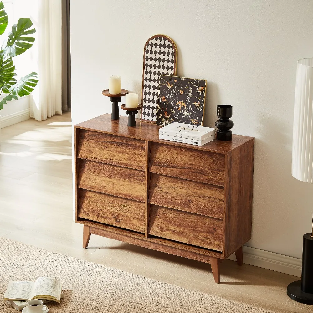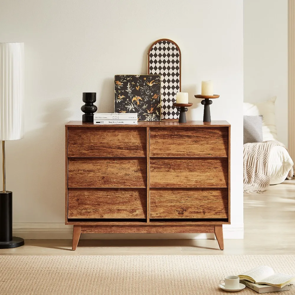 Dresser for Bedroom,6 Drawer Double Dresser,Organizer Dresser,Wood Dresser Cabinet for Living Room,Entryway,Hallway,Closet,Brown