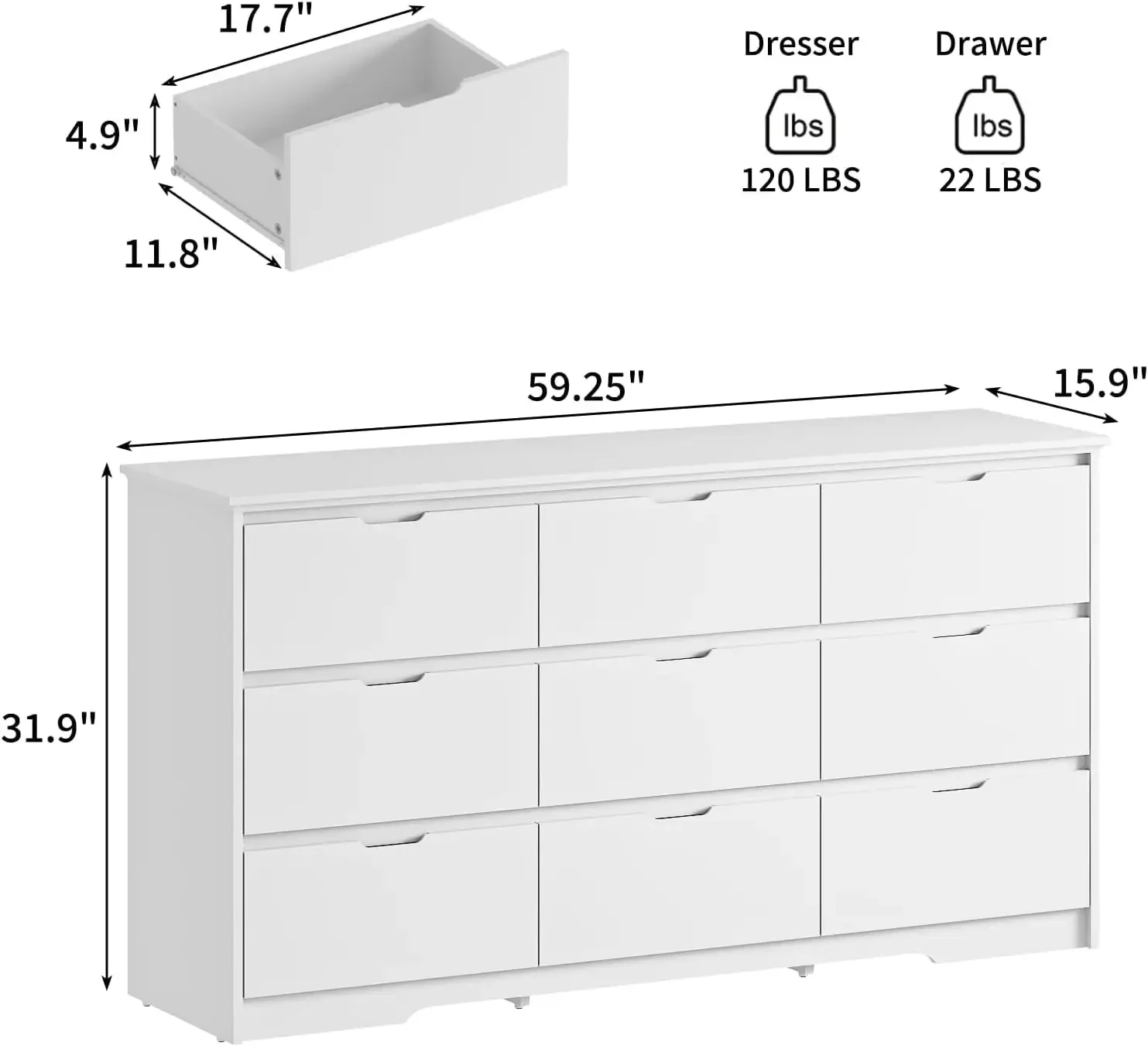 Product Dimensions | 15.74"D x 59.06"W x 31.5"H |
