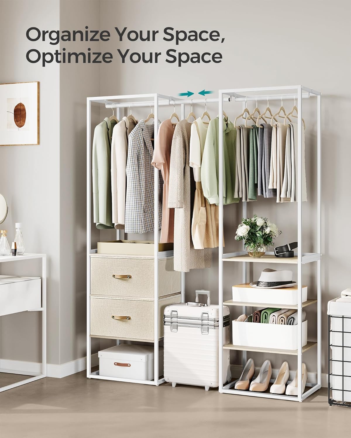 Clothes Rack, 70.9 Inch Wardrobe Freestanding Closet, Heavy Duty Garment Rack With 1 Extendable Hanging Rod, 2 Drawers And 4 Shelves, For Bedroom, Space-Saving, Natural Beige Urgr003W67