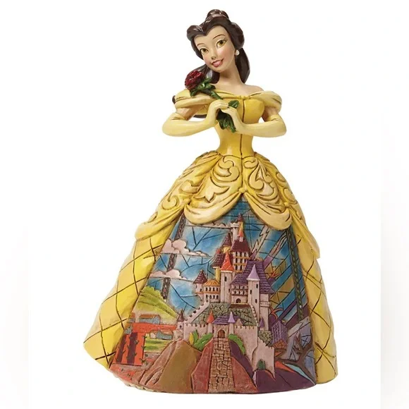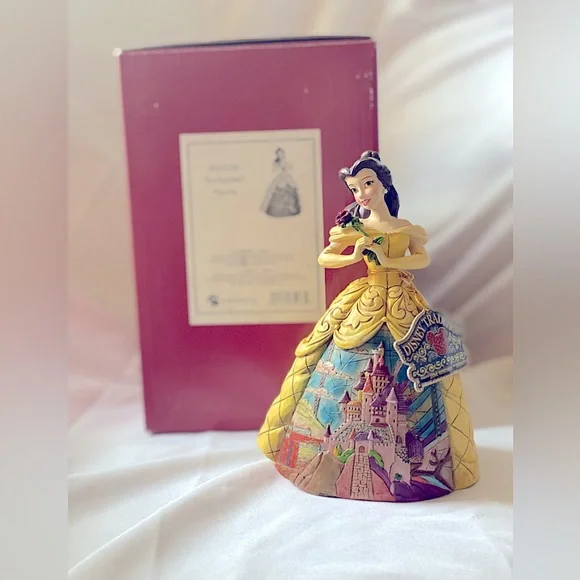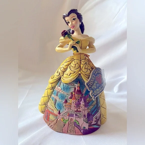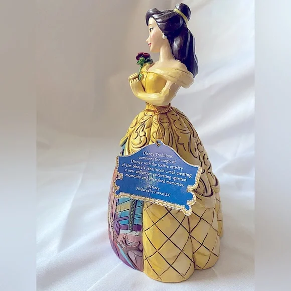 🥀 RARE! Brand new, in box, NEVER DISPLAYED! 🥀 * Intricately Hand painted* Meticulously Hand crafted* Enesco Gift-manufacturing the most beloved home decor products for more than 50 yearsDisney's Beauty and the Beast is faithfully recreated by master folk artist Jim Shore in this new collection of Disney princesses for the Disney Traditions brand. The figurine is made from cast stone. Packed in a branded gift box. Unique variations should be expected as this product is hand painted. Not a toy or children's product. Intended for adults only. The Prince's castle shown in the opening sequence to Disney's Beauty and the Beast is faithfully recreated by master folk artist Jim Shore on Belle's dress in this new collection of Disney princesses for the Disney Traditions brand. Height: 16.0cm