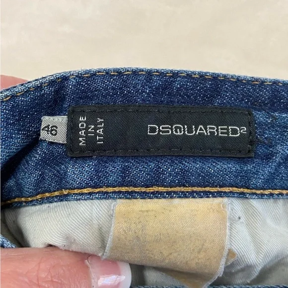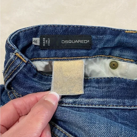 DSQUARED2 Destroyed Paint Splattered Jeans Made in Italy Size 46 - sizing is in Italy / make sure to look at measurements MeasurementsWaist 15.75"Rise 11"Inseam 29"Material tag is wornMetal D-Squared logo on back pocket Button FlyThe shaping is a little off as you can see in the pictures.***destroyed/skater/paint***
