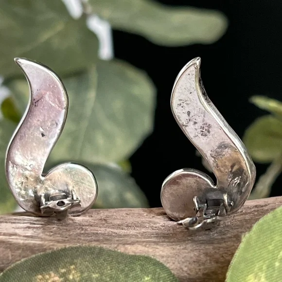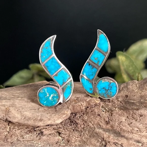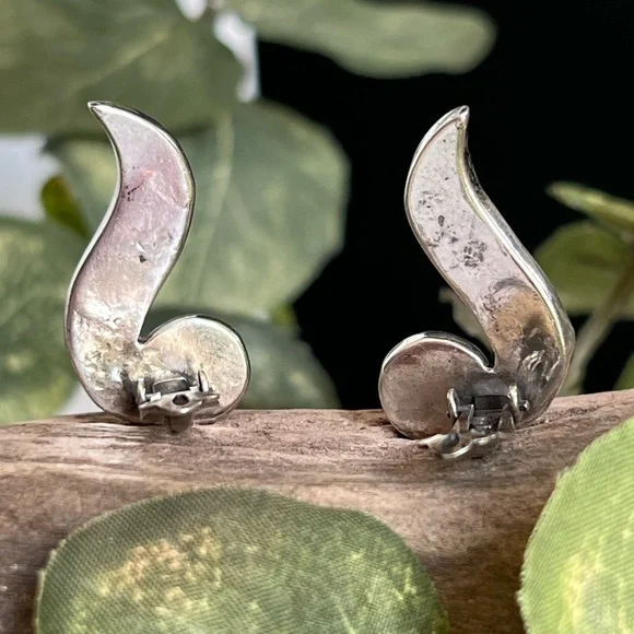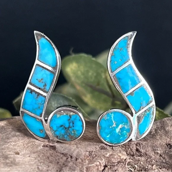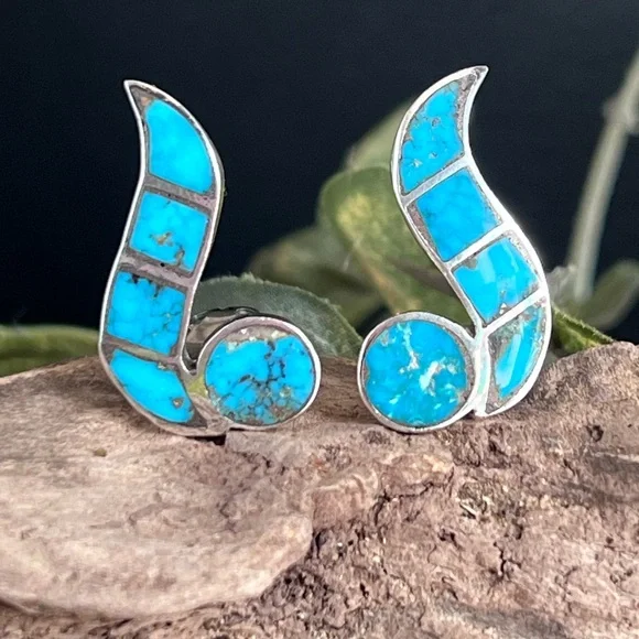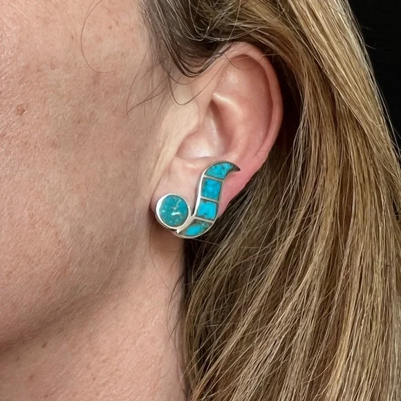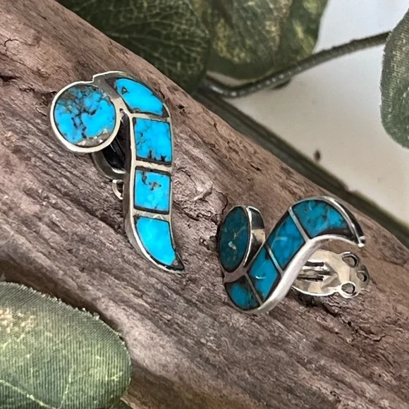 Vintage Native American Zuni Opal Inlay Clip on Earrings. 925 sterling silver blue Opal inlay Antique old pawnTags: 925 sterling silver, stamped 925, filigree lace sterling, howlite, turquoise, Smokey quartz, topaz, amber. Boho, western, Native American, southwest, modern gemstones semi-precious, drop earrings, dangle earrings, statement earringsFun summer light weight color pop unique strange eclectic festival girls weekend vacation fancy super cute super cruise beach gift
