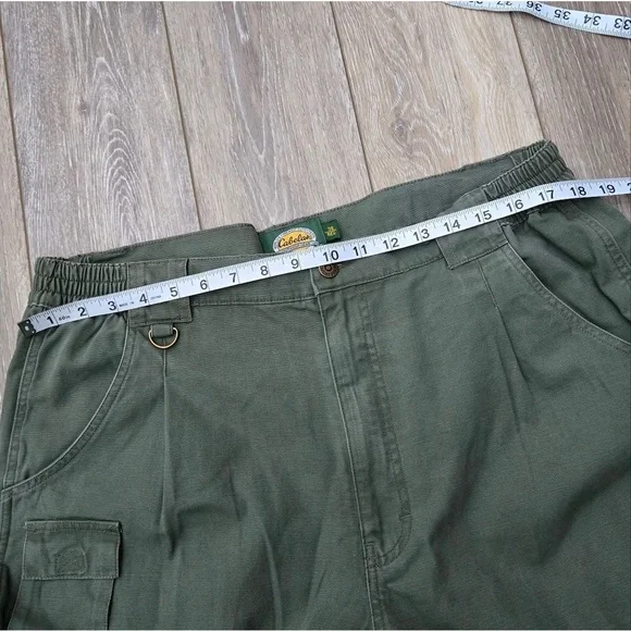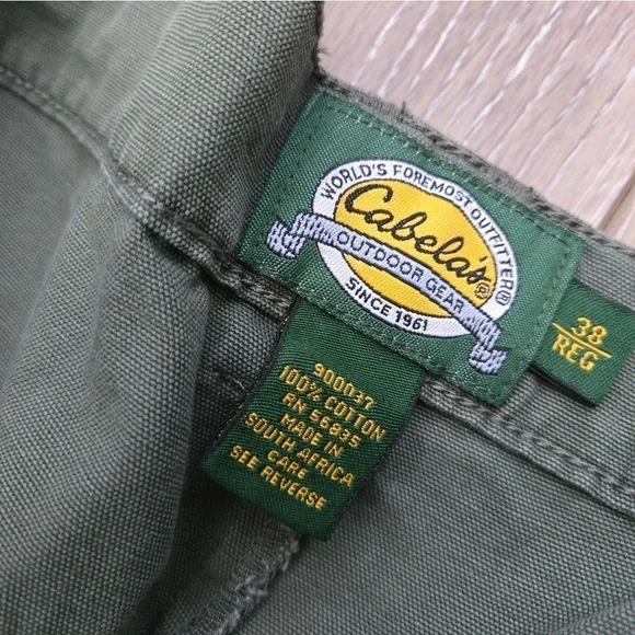 Hit the trails in style with Cabela's Cargo Trail Hiker pants. Made from 100% cotton and sporting a rugged green hue, these pants are ready for any adventure. With a whopping seven pockets, you'll have room for all your essentials and maybe a few extras. New with tags, they're the perfect blend of functionality and rugged charm for the modern explorer.7 pockets100% cottonstretch waistmen's 38 regnew with tags nwtGiftSend me an offer!Add your favorites to a bundle!*Please be sure to check the measurements before purchasing. ***Tags**: #Cabelas #TrailHiker #CargoPants #AdventureReady #GreenGear