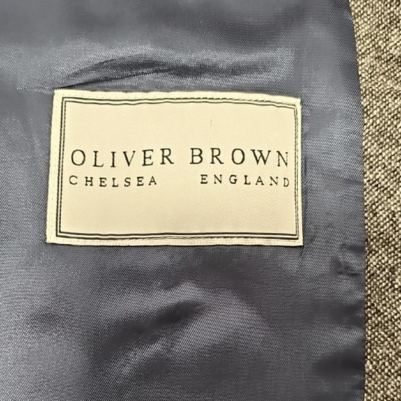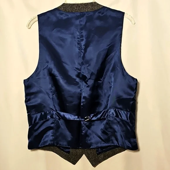 Add a layer of distinguished taylored quality, cut, and style to your very dapper work, event, or equestrian wardrobe!Oliver Brown - Chelsea England |Mens Gray & Black Tweed button-up Vest with midnight blue back & lining | adjustable back cinch strap | two front faux pockets | no material identification (believed to be 100% wool) | Excellent pre-loved condition | Size 38R Flat measurements:13.5" shoulder to shoulder 20" armpit to armpit 21.5" length - shoulder to hem(back)24" length - shoulder to hem (front)🛑 Bundle & Save!