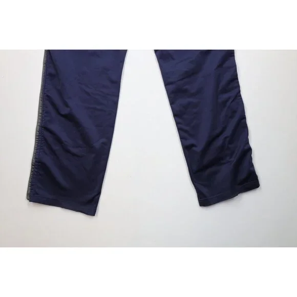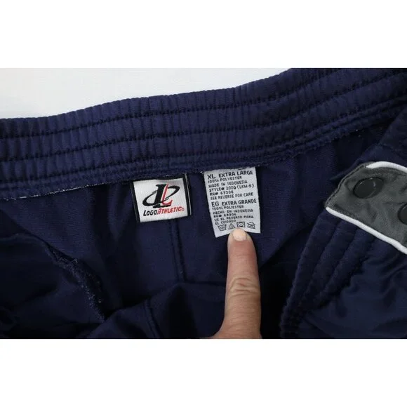 Vintage 90s Streetwear Mens XL Faded Color Block Tearaway Wide Leg SweatpantsMens PantsDark spots both legs. Blemish bottom right leg. Cuffs ripped. Has color fadeMens size XLargeMeasurements are:19 inches across the waist laid flat33 inch inseam46 inches from top to bottom9.5 inch leg openBluePolyesterCheck out my other items in my store!PR4