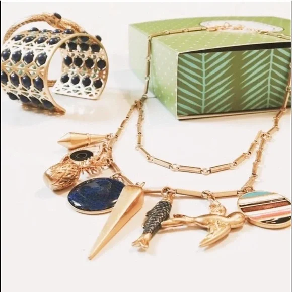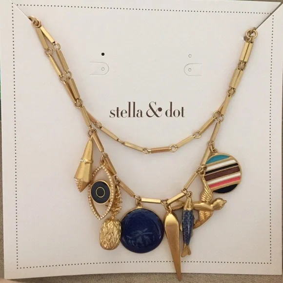 Gorgeously unusual retired Stella jewels!Inspired by found treasures once lost at sea this charm necklace is beautifully unique.Semi Shiny Gold and Vintage Gold Finish17" with 2 1/2" ExtenderLobster Clasp ClosureNew to ? Welcome! Use the code POSHMEL888 to get $10 off your first order😊Tags: summer fall romantic date night wedding bridesmaid spring garden vacation model event cute party bachelorette cocktail evening girls night out graduation club formal winter christmas cruise chic pageant getaway holiday birthday prom photoshoot homecoming gift present bohemian boho vintage contemporary elegant retired rare chandelier versatile rhinestone semi precious hand sewn boho art deco brilliant crystal stones jewel encrusted bejeweled sparkling rhinestones shabby chic power hand sewn made accent exquisite ultra art masterpiece adorn edgy trending style sophisticated minimalist office casual exotic classic delicate dainty fine vibrant vivid
