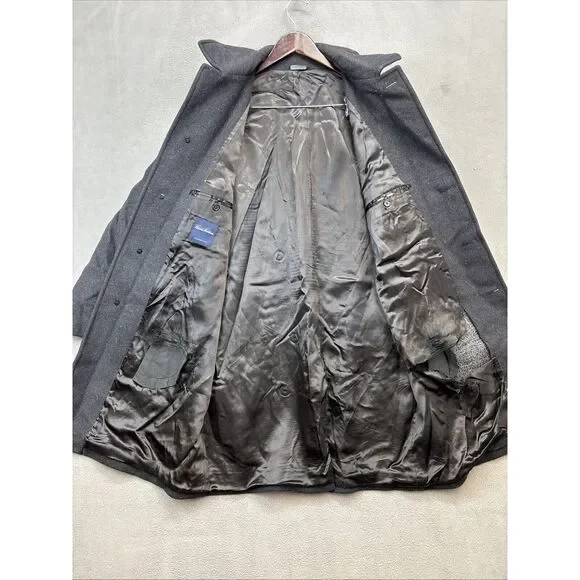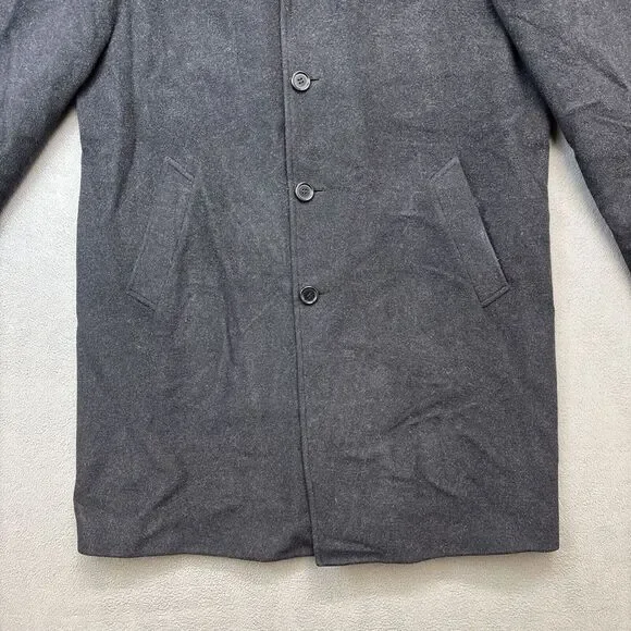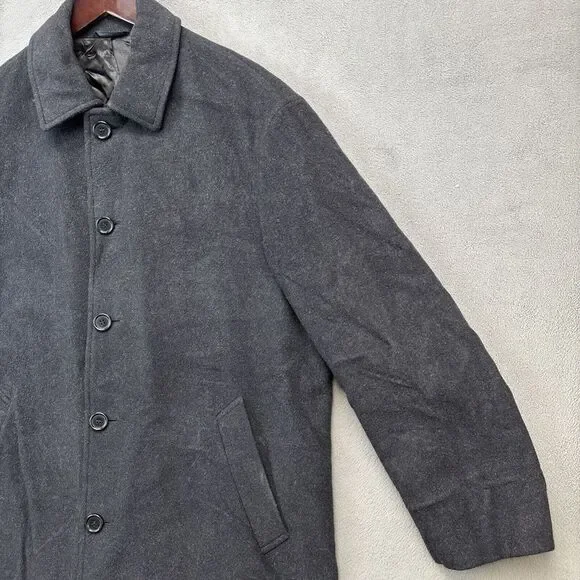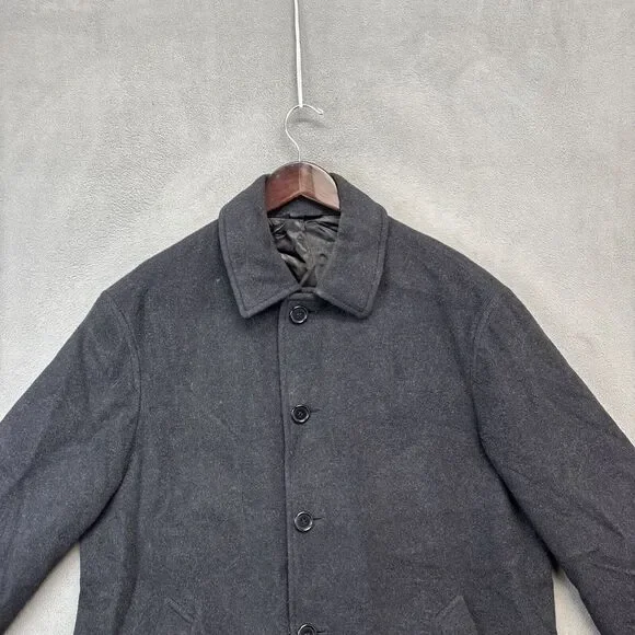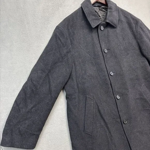 Brooks Brothers Overcoat Mens 40R Black Soft Italian Lambswool Italy 5 ButtonChest: 24" acrossShoulders: 20.5"Sleeve: 24.5"Length: 39.5"There are tears on the interior lining of the jacket. See picsFast and Secure ShippingPlease visit out store for other great deals. Save Money with Combine Shipping and Order Discounts on Multiple Items.Check out my Store