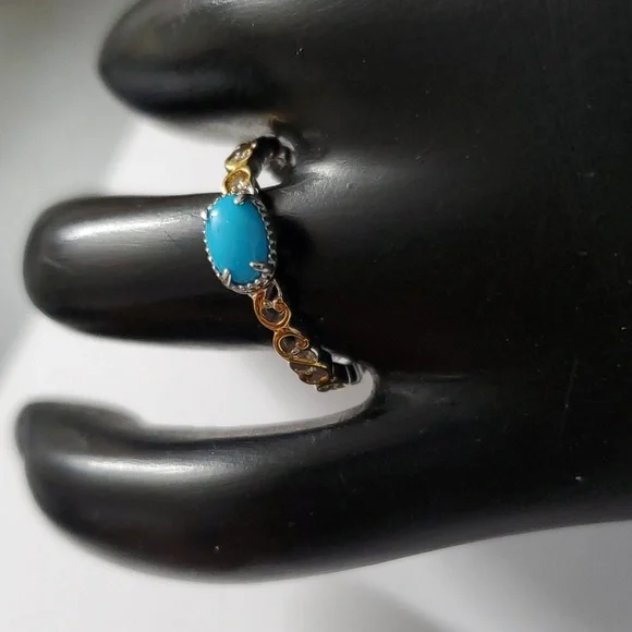 Material/ Metal: 925 / Sterling Silver.Style: Ring. Size: (See Pictures). Stones: Turquoise. Stamp : Sterling and Tested.For: Men, Women and TeensDescription: Gorgeous sterling silver 925 Turquoise Solitaire minimalist ring with gorgeous detailing. View pictures for all furnished details.Here to shop? Checkout my closet and boutique for Vintage, antique, Zuni, African, Free Spirit, Urban Spirit, Urban, Jhumka, Nature, Nautical theme items. Something for occasions like Wedding, Butterfly, Handmade, Classy, Bride, Bridesmaid, bride's mom, fiancé,wife, girlfriend, Anthro, Zara, Anniversary, Birthday,Proposal,Sweet 16, University, School, College, turquoise jewelry.Educational material, one of a kind clothes and dresses for little kids, watches, rings, earrings, necklaces, bracelets, brooches, collectibles. VintageLooking for something? Just ask