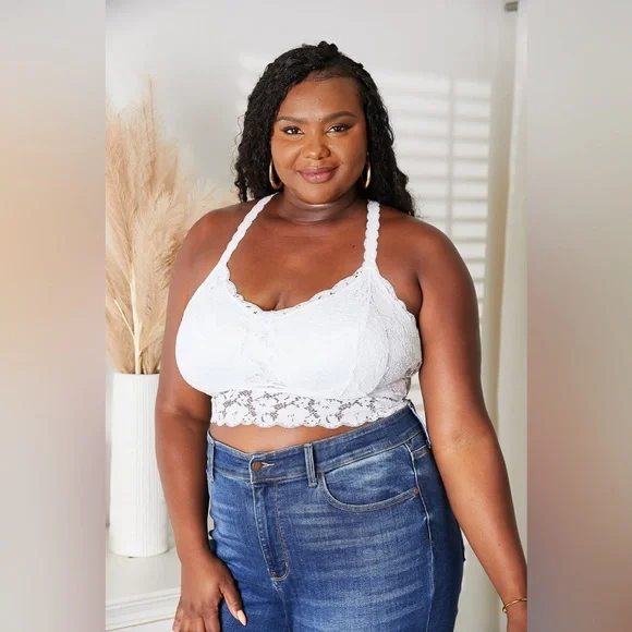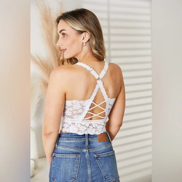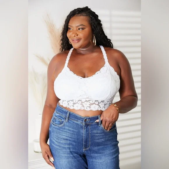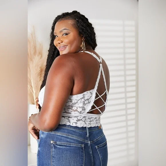 Indulge in sensuality with this crisscross lace bralette. The intricate lace and crisscross detailing create a captivating and alluring look. The bralette offers comfortable light support and is perfect for layering under low-cut tops or adding a hint of allure to your lingerie collection. Feel confident and beautiful in this stylish and seductive lace bralette.Chest pad: Removable paddingUnderwire: No underwireSheer: OpaqueStretch: Moderate stretchMaterial composition: 90% nylon,10% spandexCare instructions: Machine wash cold. Tumble dry low.ImportedModel information:Curve model-height 5'9", bust 46", waist 37", hip 48", size 1X, jeans size 14WRegular size model-height 5'6", bust 34", waist 25", hip 35", size S, jeans size 1Product measurements:S/M: (32AA-36C; 32D-34F) bust 32-36 inL/XL: (38AA-40C; 36D-40F) bust 38-40 in1XL/2XL: (42AA-44F; 40G-44H; 40HH-42HH) bust 42-44 in2XL/3XL: (46AA-48H; 44HH-48HH) bust 46-48 in✨🛍BUNDLE AND SAVE! Discount of 30% on bundles of 3 or more🥰. Feel free to reach out with any questions!😍🌟