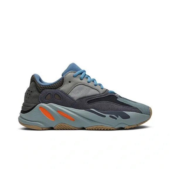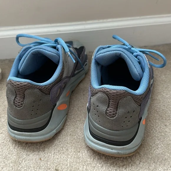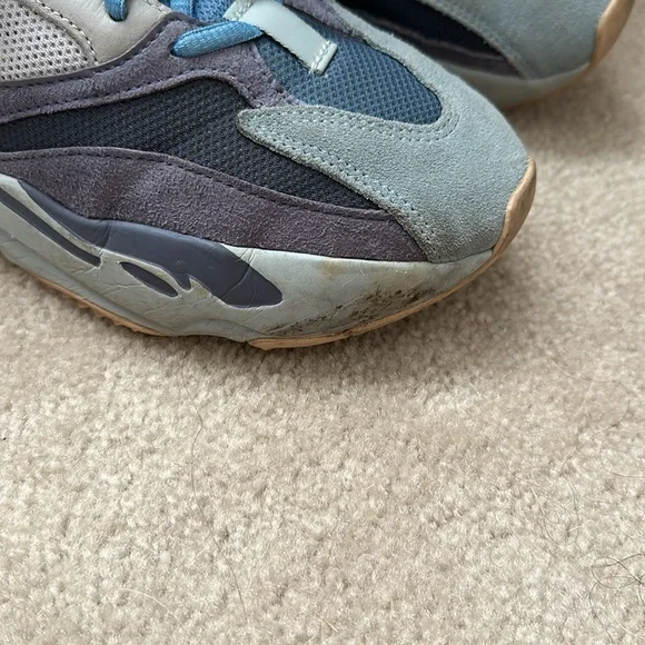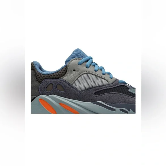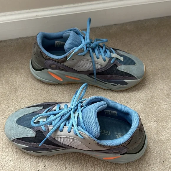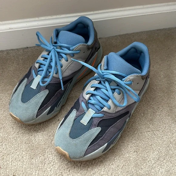 In UC. See pics for marks/signs of wear. No box. —————The adidas Yeezy Boost 700 'Carbon Blue' is a study of tonality inspired by previous 700 models. Debuted in December 2019, the sneaker is presented with a muted blue scheme across the upper's suede and nubuck panels with the tongue and laces in a bright tint. Grey tones for the mesh collar, perforated heel panel and leather eyestays anchor the palette. A sculpted midsole housing full-length Boost, with defined pops of color and dual-tone rubber outsole finish it off.