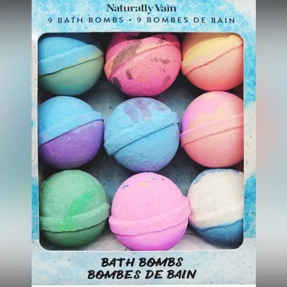 Naturally Vain Scented Bath Bombs 9 PackSpice Up Your BathColor & Scent These smell amazingCheck them out online Naturally VainEach bomb sells for $7 each9 Bath bombs in boxNew In PackagingSeparate for Stocking Stuffers or Easter BasketMakes a Great Gift for Christmas Birthday Anniversary Bachelorette Romantic Vacation Honeymoon Party Multiple Packs Available But they are Heavy!5 lb limit per package for $7.95 Shipping