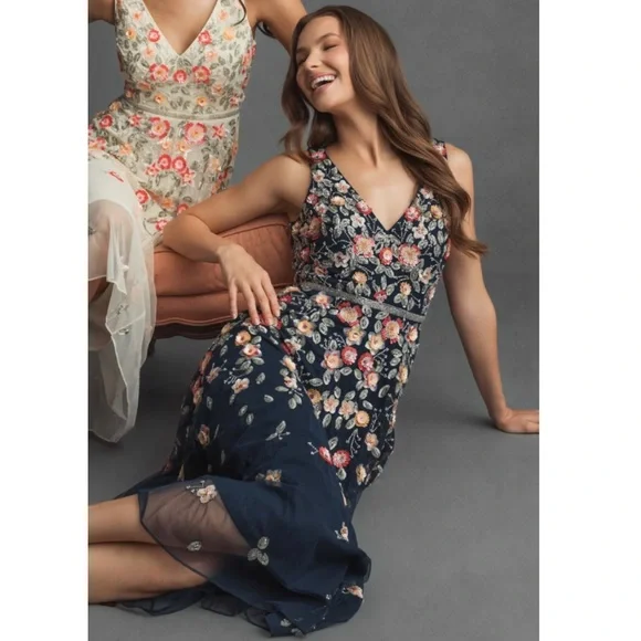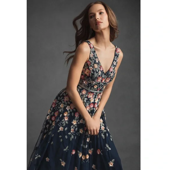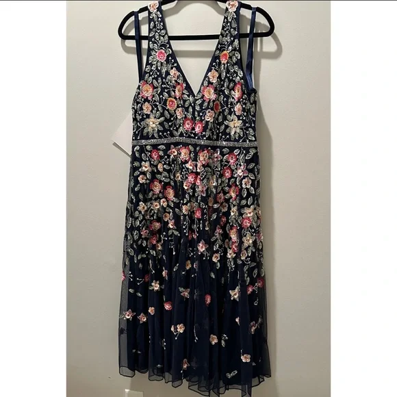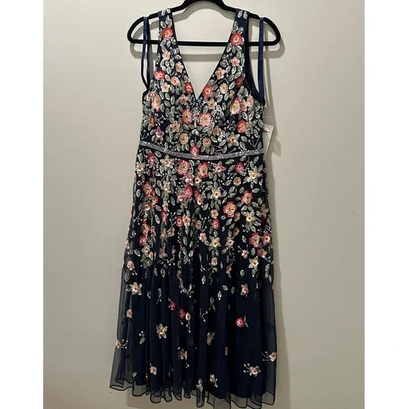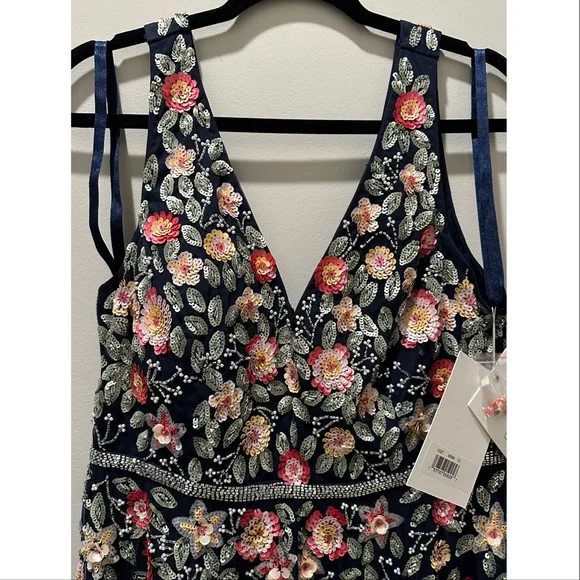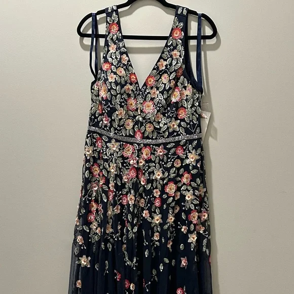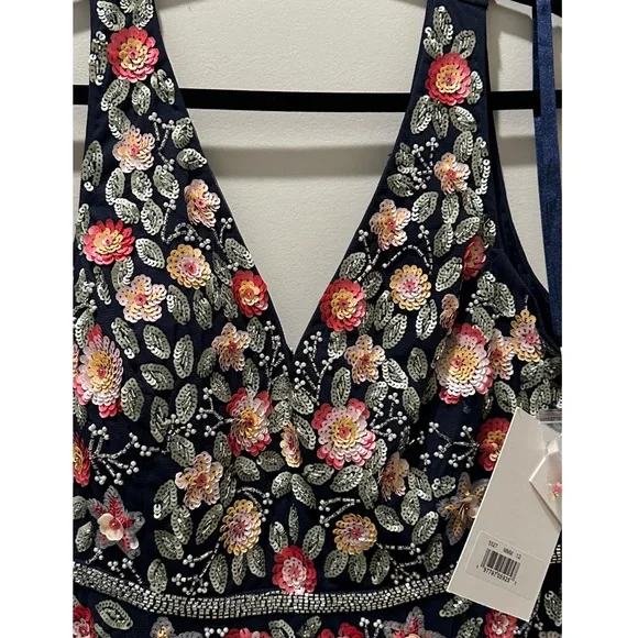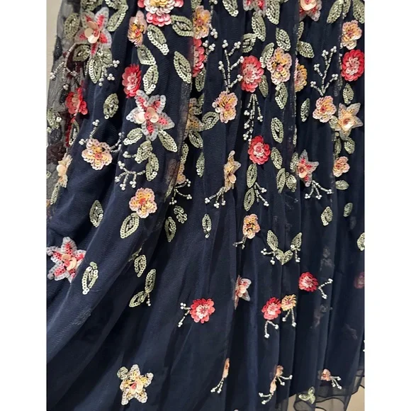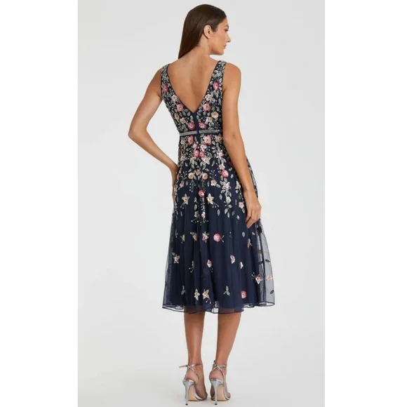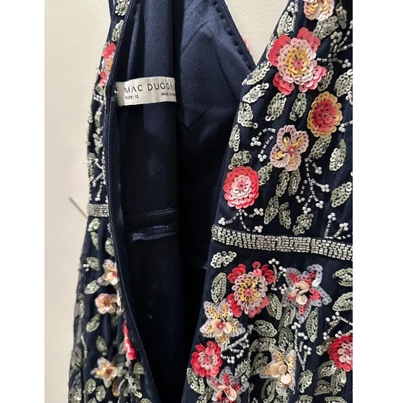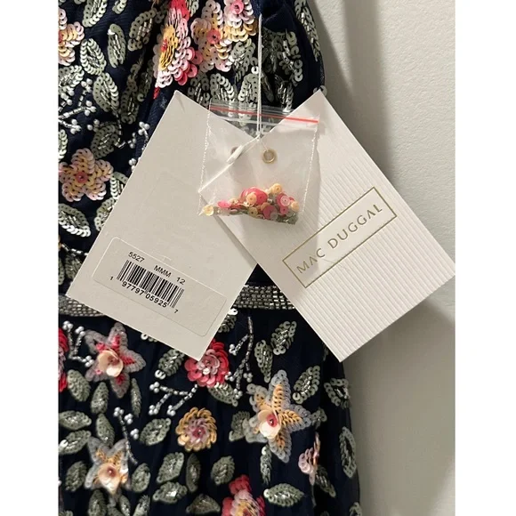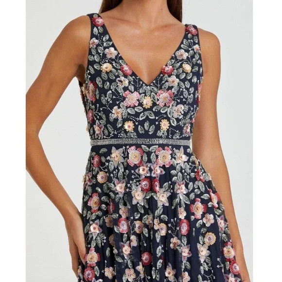 Elevate your style with the V-neck Sleeveless Midi Floral Beaded A-line Dress. Crafted from embellished mesh fabric, this dress will make you stand out at any occasion. The stunning floral sequin and beading add a touch of elegance, making it perfect for both day and evening events.Mac Duggal Embellished mesh overlay; 100% polyester liningFully lined through bodice and skirtV-necklineSleeveless All-over stunning floral embroideryConcealed back zipperApprox. 48" from top of shoulder to bottom hemColor: Midnight MultiStyle #5527Size: 12NWT. Due to its delicate nature there may be some loose strings, pulls, missing beads and/or sequins. Replacement bead pack included.#ethereal beauty, Quinceañera, cocktail, date night, bachelorette, weddings, wedding guest, rehearsal dinner, homecoming, military balls, galas, New Years Eve, holiday parties, special occasions, Captain’s Dinner, dancing, ballet, festival, vacation, resort, fête, celebrations, theatre, Valentines, elegant, black tie, statement piece, luxury, designer, opera, influencer, Vegas, getaway, NYC, Commodore’s Ball, Broadway shows, concerts, symphony, soirée, piano concerts, orchestras, reunions, ballroom, theatre, feminine, classy, engagement, cruise, dinner party, Old Hollywood, vintage, photo shoot, red carpet, charity event, garden party, bridal luncheon, bridal shower, beach wedding, summer wedding, baby showerImport