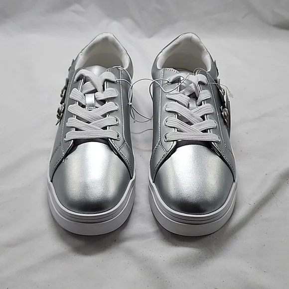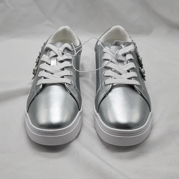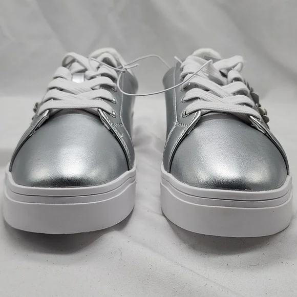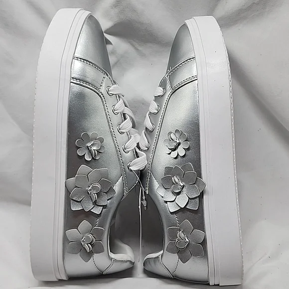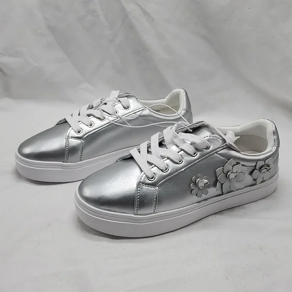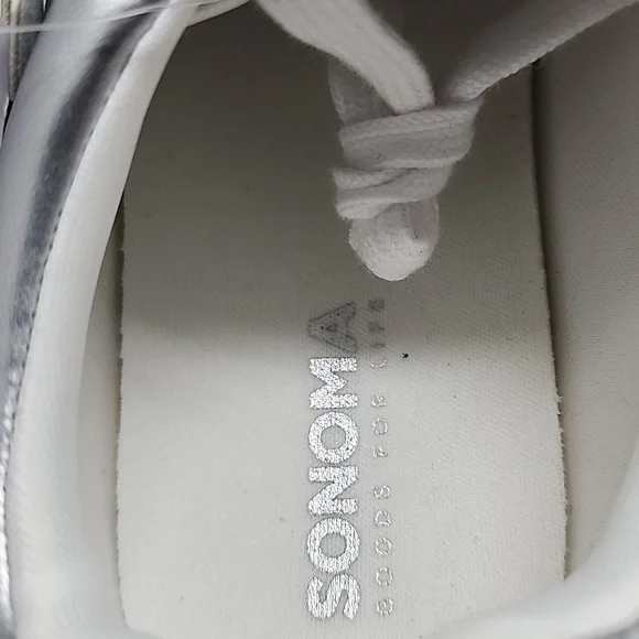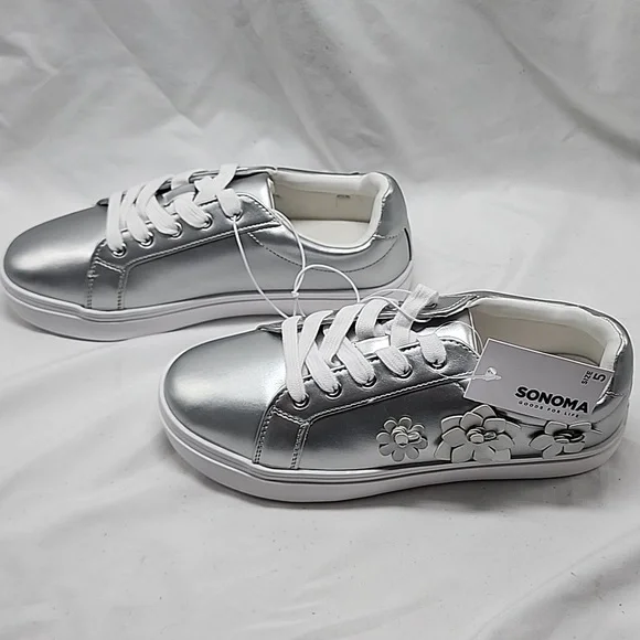 WELCOME TO MY CLOSET, THESE SONOMA SNEAKERS STYLE NORRII SILVER PLATFORM STYLE ARE NEW ,NO FLAWS , COME IN A BRAND NEW BAG. THEY FEATURE BEAUTIFUL DAISY FLOWERS PROTRUDING FROM THE SIDE OF THE SNEAKERS, GIVING THEM A MODERN DESIGN AND TOUCH. THE COLORWAY IS WHITE RUBBER SOLE, UPPER SILVER , NICE COLORWAY. LACE-UPS , NEW .She'll be blooming with style when she steps onto the playground in these Sonoma Goods For Life® Norii Flower Kid Girls' Sneakers.3D flower detailTrendy thick solePolyurethane upperFabric liningThermoplastic rubber outsole and midsoleFoam footbedRound toeLace-up ClosureHeel height: 0.78 in.Platform height: 0.78 inchesSpot cleanSONOMA STYLE: NORRII SILVER COLORWAY:: WHITE/ SILVER LACE UPS COMFORTABLE INSOLES RUBBER OUTSOLE GOOD TRACTION GIRLS/WOMEN'S SIZE 5 ALL SHOES ARE INSPECTED NEW OR USED BEFORE SHIPPING, WILL SHIP SAME DAY IF EARLY ENOUGH IF NOT NEXT DAY EARLY IN THE MORNING THANKS AND GOD BLESS YOU ALL ALWAYS AND HAVE A GREAT DAY. PLEASE REVIEW ALL PICTURES FOR A SMOOTH SHOPPING EXPERIENCE, THANKS PLEASE FEEL FREE TO SEND ME A GOOD OFFER THAT WORKS FOR BOTH OF US, THANKS 😊THANKS FOR ALWAYS COMING BACK TO SHOP HEAR AT OUR CLOSET,STORE MANAGER