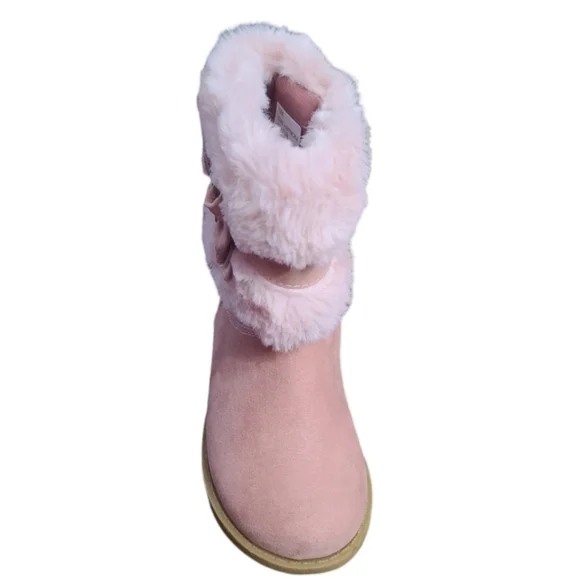 Brand New in box. No flaws. These Rachel Shoes toddler girls' boots feature a decorative collar detail with overlay straps and bow. The boots have a round toe, side zipper closure, and padded footbed. Supper cute, cozy boots! Details Faux-fur collarBow and flower detail with rhinestoneRound toeZipper closurePadded footbedShoe Construction Synthetic upperFabric liningThermoplastic Rubber outsole for good grip and traction.*Original box included in the sale. Please see photos for best descriptions.Love it? Send me an offer!New to ? Save $10 on your first purchase by signing up with my referral code: MOM_TO_MOM. Please leave any questions below, or feel free to bundle your likes, 15% discount applied at checkout on 3+ items. WILL TAKE REASONABLE OFFERS. Orders ship same day or next day from pet free and smoke free home. Thank you for stopping by and supporting my business.#fauxfurboot #toddlerboot #winterboot #boot #girly
