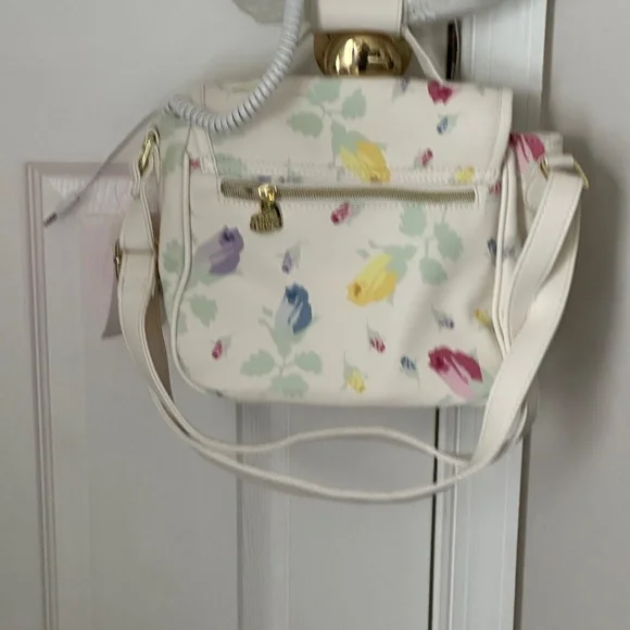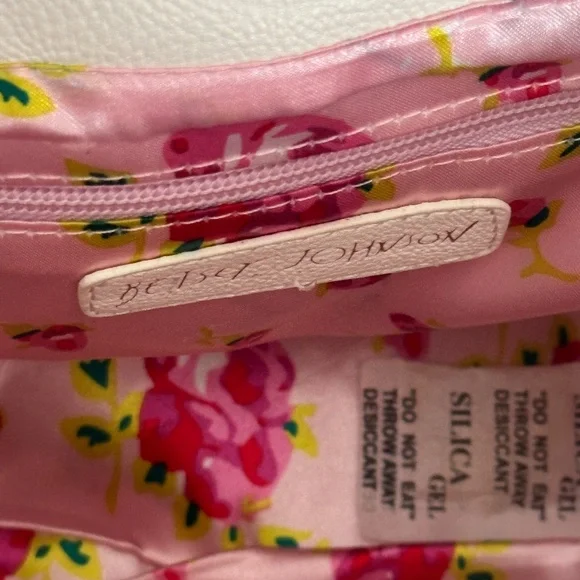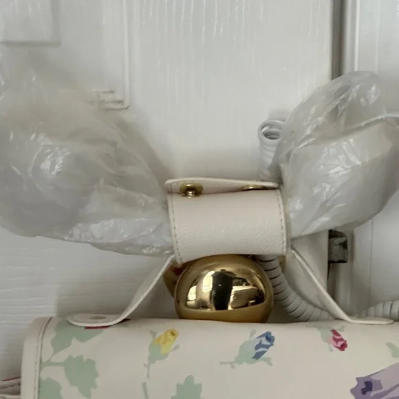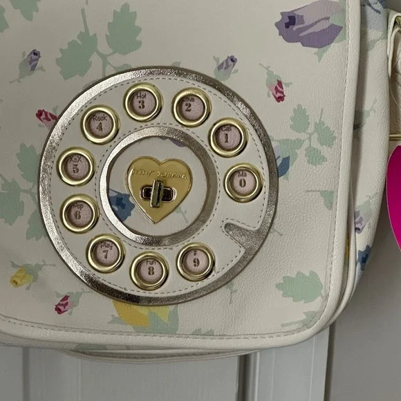 Brand New Betsey Johnson Phone Kitsch Vintage Crossbody bag.New with tags.Rosebud pattern.The phone handle disconnects; Zip pocket on rear Interior: Has one main compartment, with zip pocket on one side and 2 slip pockets on the other Stands 7.5" tall (plus handle) x 9.5" wide x 4" deep at base NWT.