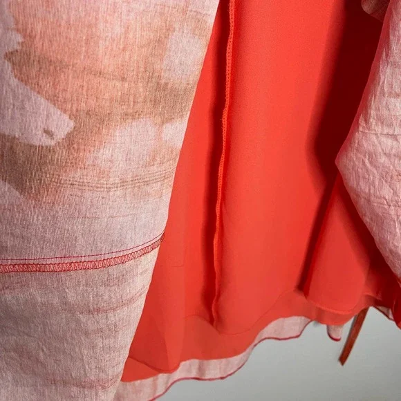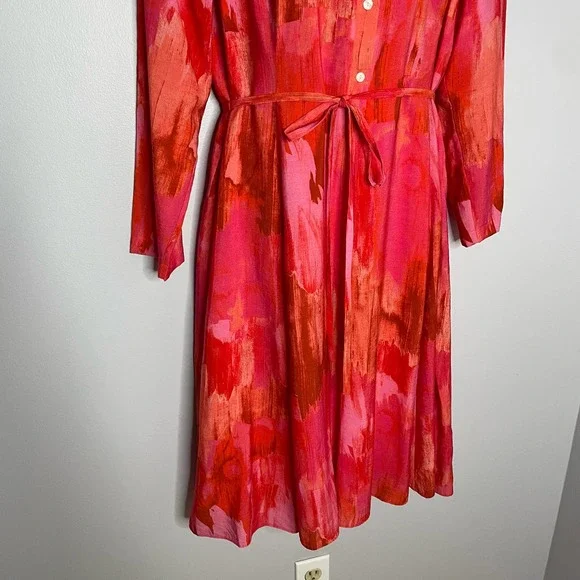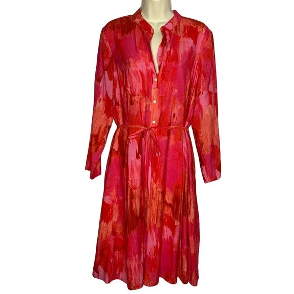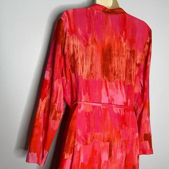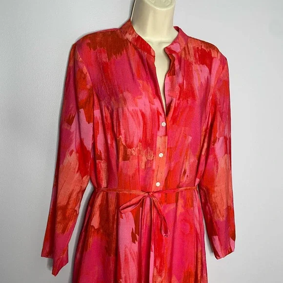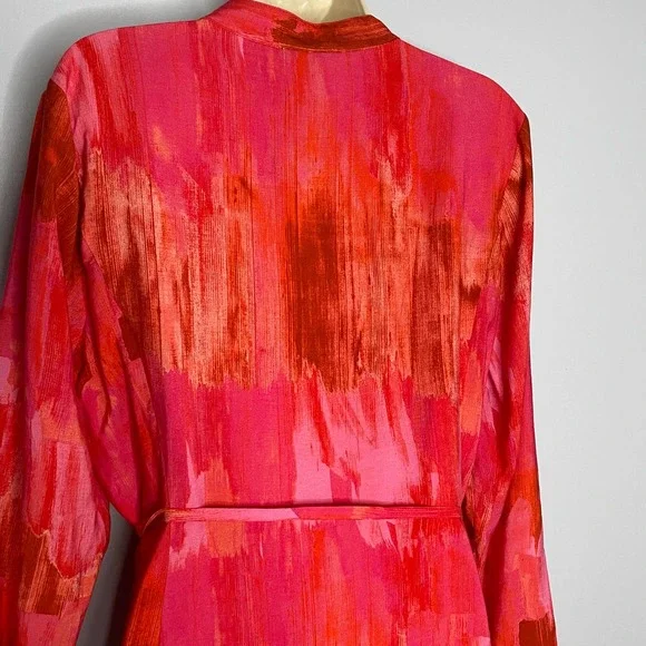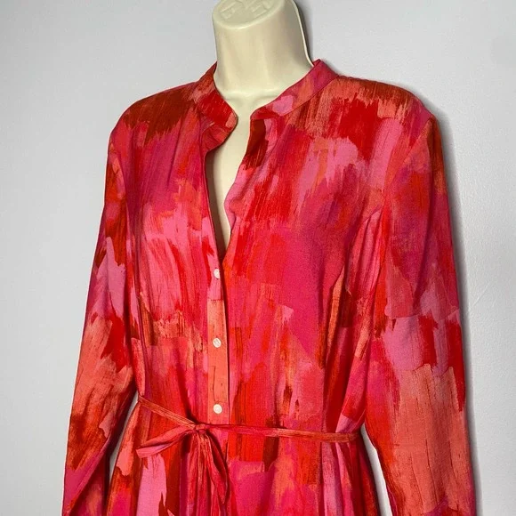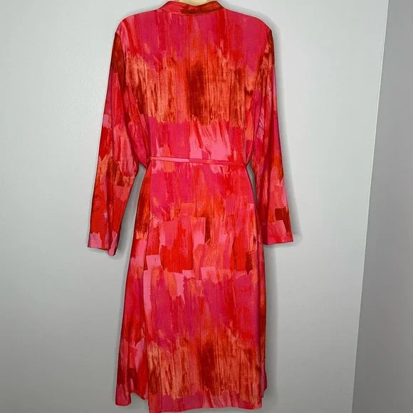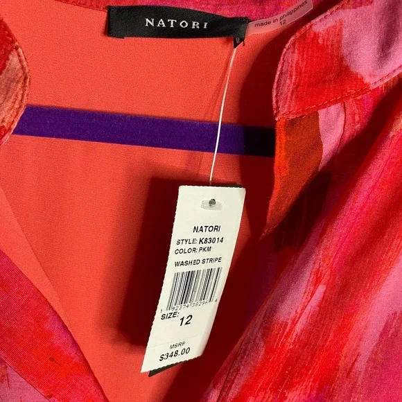 Natori Washed Striped V Neck Midi Dress Size; 12New with tagBand collar; v neckline. Three-quarter sleeves. Partial button front. String ties at waist. A-line silhouette. Hem hits about at the knee. Rayon/nylon. Dry clean. Imported.Measurement approximately laying flat Length Shoulder to Hem: 42.5"Underarm to Underarm: 21"