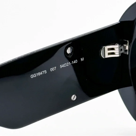 100% NEW AUTHENTIC EYEWEAR WITH FULL PACKAGE Model: GG1647S 007 54-21-140Condition: New with full package Frame color: Black Lens color: GreyFrame material: AcetateLens socket: 54 mmBridge width: 21 mmTemple length: 140 mmMade in Italy Item include: authentic eyewear, certificate of authentic, cleaning cloth, case.
