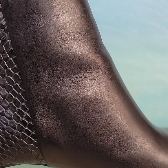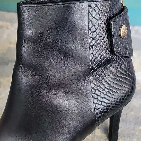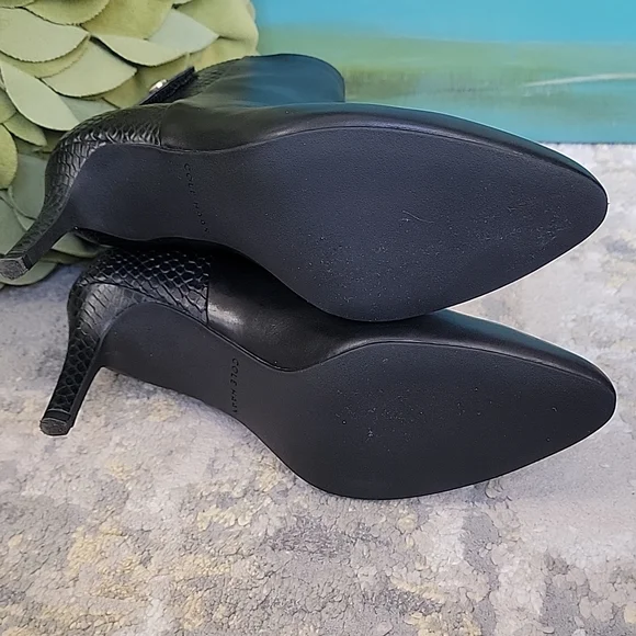 Cole Haan Claremont Shootie Snake Embossed Leather & Smooth Leather UpperBack Zip ClosureVelcro Over Zip ClosureSignature logo hardware Almond toe Padded footbed Wrapped heel Rubber outsoleHeel Height: 3 1 ⁄ 4 in.EUCSee last pics for faint scuffs.Check out my closet for brands like: Abercrombie & Fitch, Aerie, Anthropologie, Athleta, Banana Republic, Barefoot Dreams, Bed|Stu, Boden, CABi, Club Monaco, Coach, Deletta, GAP, Frame, Free People, Kate Spade,The Limited, Lululemon, Maeve, J Crew, TOMS, Madewell, Michael Kors, Michael Stars, Orla Kiely, Sam Edelman, Seychelles, Sorel, Susana Monaco, Timberland, Vans, Vince Camuto, White House Black Market, and many more.