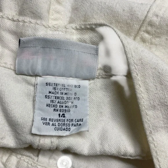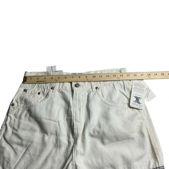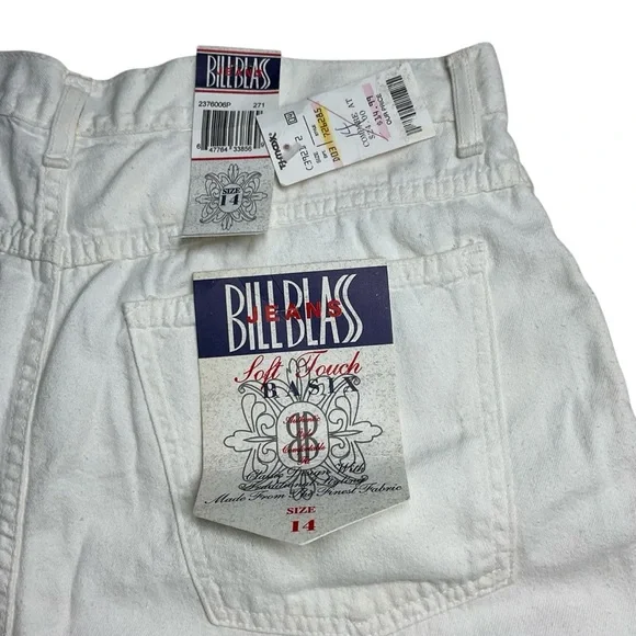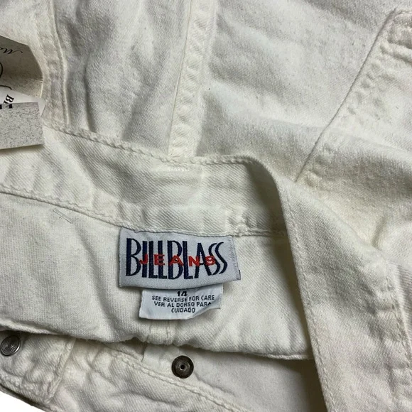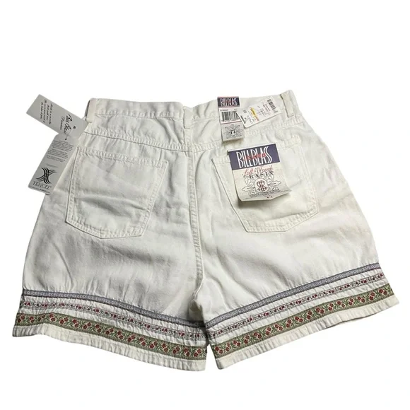 Vintage NWT Deadstock Bill Blass White Floral Ribbon Accent Jean Shorts Size 10Features: Classic 5 Pocket Style Zippered Button Front Closure 3 Floral Ribbon Hem Accents Machine WashLay Flat to Dry Material Content: 55% Tencel 30% ECO15% Cotton Measurements in Photos - Keep in mind these shorts are vintage, the tag states 14 but they measure a modern size 10.New Condition