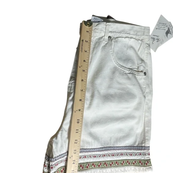 Vintage NWT Deadstock Bill Blass White Floral Ribbon Accent Jean Shorts Size 10