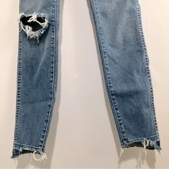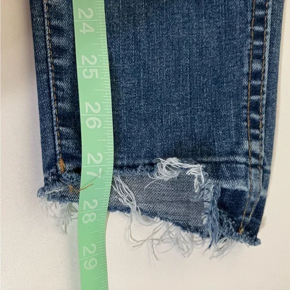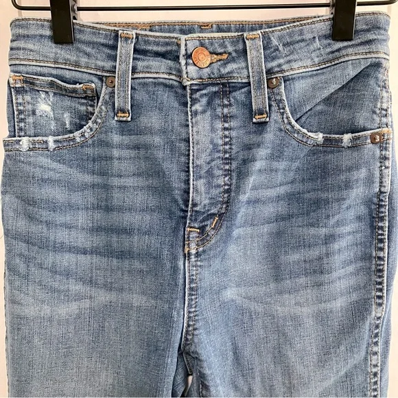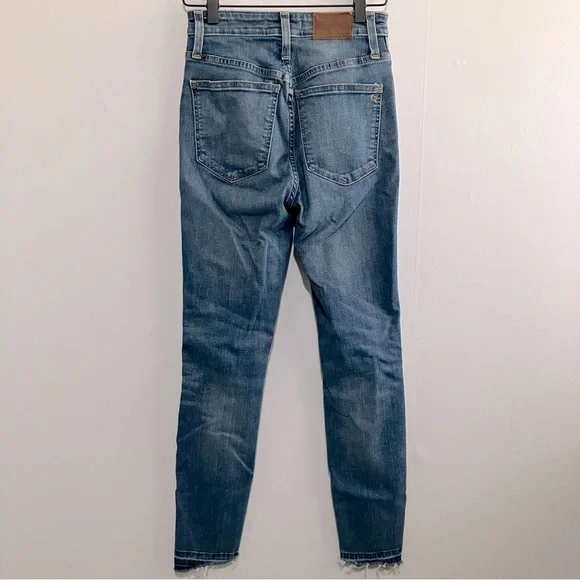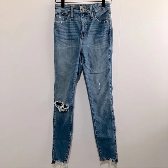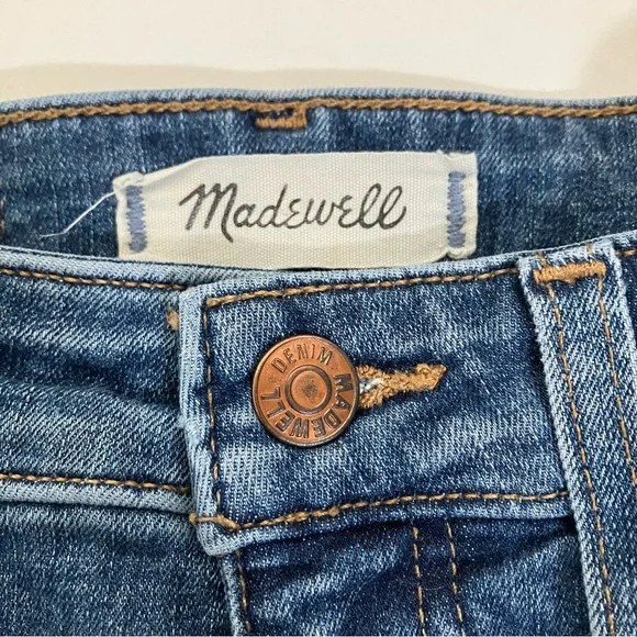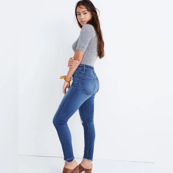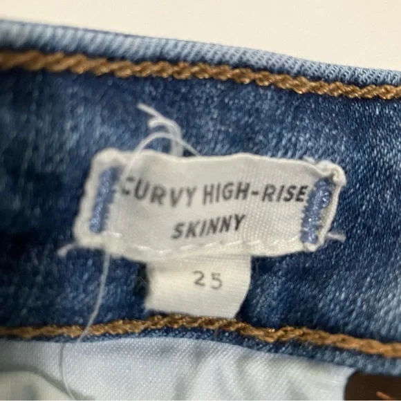 Madewell Curvy High-Rise Skinny Jeans: Drop Step-Hem EditionThe curvy fit is here! We took our classic skinnies with hold-you-in Magic Pockets in front and reengineered them for those with an hourglass shape. What does this mean? A narrower waist with a contoured band, a longer rise (for a rounder booty) and a little extra room at the hips and thighs. Simply put, you're gonna look amazing in these jeans. And, bonus, this pair has cool let-down step hems.Sit above hip, fitted through hip and thigh, with a skinny leg.Style J9409CONDITIONPreowned - great conditionMEASUREMENTS (All measurements are approximate, see photos):Waist (across): 12.5"Rise: 10.5"Inseam: 27"Women's Size 25MATERIALS:88% cotton8% polyester4% elastaneAll orders ship same or next business day!