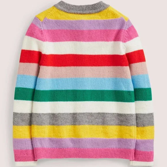 Mini Boden Rainbow Stripe Cardigan-Multi Rainbow Stripe.It has bright rainbow colors!45% polyamide 35% wool 15% cotton 5% alpacaMachine washableCross Posted