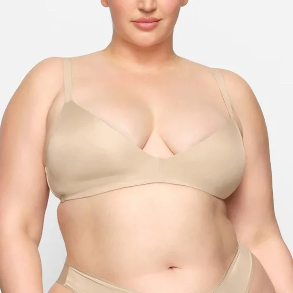 A flattering bra silhouette with lightly-lined, cloud-like molded foam pads for an ultra-comfortable fit. This supportive wireless style is ideal for everyday wear and perfectly shapes and contours the bust for a super smooth look. Features fully adjustable straps, wide wings for extra smoothing, a tonal 3D SKIMS logo on the front, and a hook and eye back closure. Fits true to your SKIMS bra size.Skims clay 36aSister size to 34b