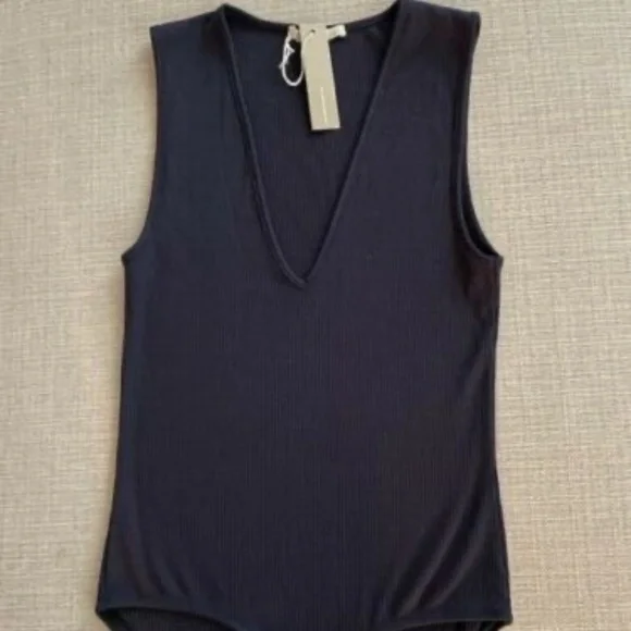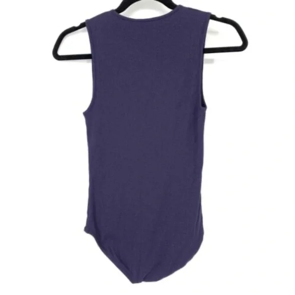 Skin Worldwide BodysuitSize XS V-Neck Form Fitting StyleSleeveless Rib Knit Double row snaps at gussetNavy BlueOrganic Pima Cotton BlendNew With TagsMeasures13" laid flat ~stretches to fit24 1/2"taken from high point shoulder to bottom edgeLuxury bodysuit. Lovely soft, super comfy with nice stretch.