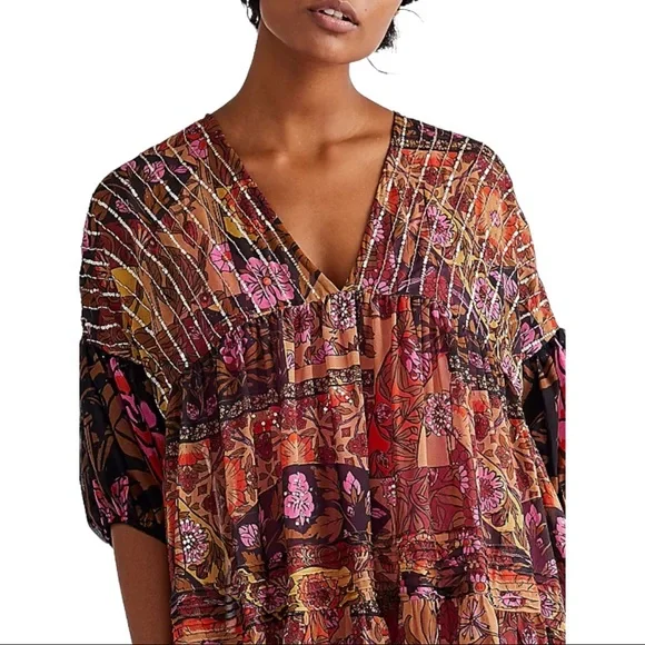 Perfectly printed in the most effortless style, this timeless maxi dress is featured in a v-neck design with sequin and beaded detailing.Brand New w/Tag*Maxi Silhouette*Pullover Style*Dropped Shoulders*V-Neckline*Short Elasticized Sleeves*Sequin & Beaded Embellishments*Piped Trim*Lightweight Fabrication*Polyester*Hand Wash*ImportedColor: Brown, Black, Pink, OrangeApproximate Length: 55"Inquire about additional measurementsProduct label has a mark to indicate that item cannot be returned to the retail storeNo Slip Included w/PurchaseTags: atreasuretrove, Boho, Bohemian, Gypsy, Romantic, Cottagecore, Retro, Vintage Inspired, 70s, Luxe, Feminine, Princess, Wistful, Ethereal, Flowy, Festival, Modern, Trendy, Academia, Tunic, Maxi Dress, Short Sleeve, Floral, Embellished, Beaded; Free People, Anthropologie, LoveShackFancy, Revolve, Shopbop, Ralph Lauren, Tommy Hilfiger, Cecilia Prado, For Love and Lemons, Lilly Pulitzer, Fillyboo, Maternity