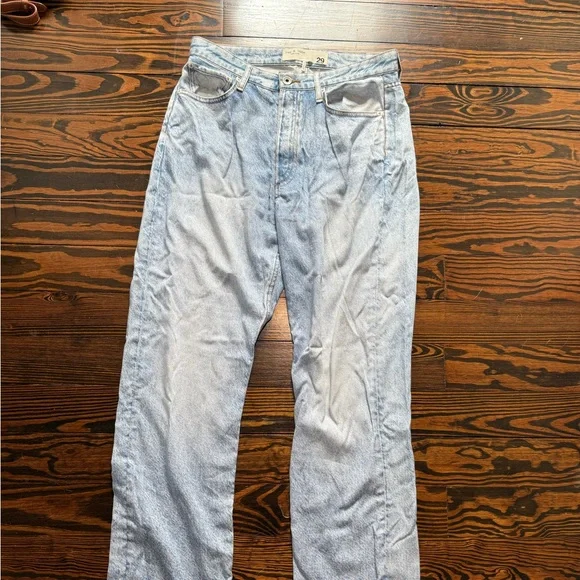 “Sweatpant Jeans” from the Rag & Bone Miramar collection. These pants are so comfortable! They look so much like real denim jeans but have the feel of soft sweatpants. The zipper and front pockets make it so you can barely tell a difference. In great condition - very faint small stain above the knee (pictured) that will likely come out. Selling because I need to size up. Run a bit small. Perfect for casual outings, travel, to style up for dinner, or any other occasion!