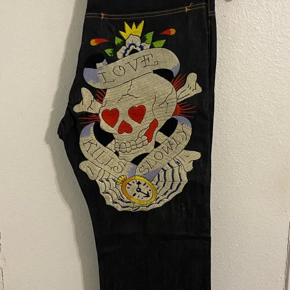 Vintage Mens Ed Hardy jeans / Pants 40x34 Love Kills Slowly black EUC