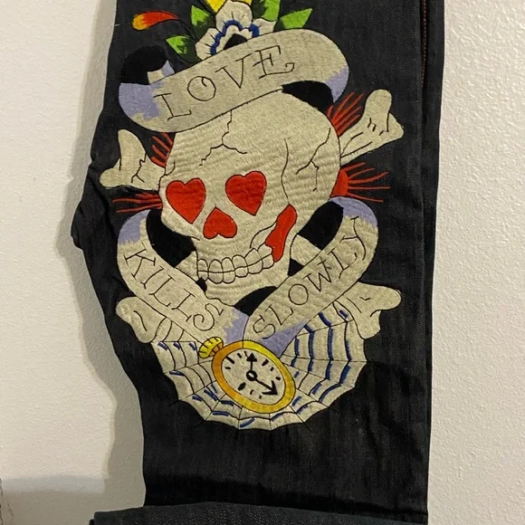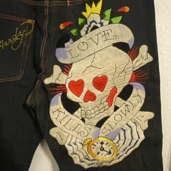 Mens Ed Hardy jeans / Pants 40x34 Love Kills Slowly black EUCFresh and clean and odor freeExcellent used condition fresh and clean and odor free comes from smoke free pet feee home
