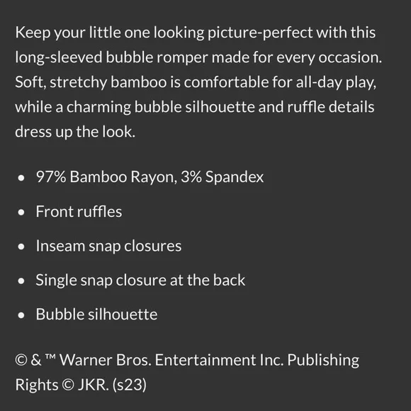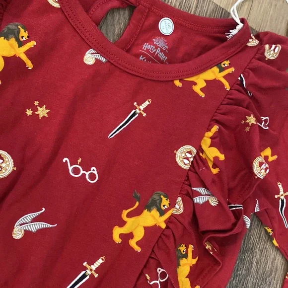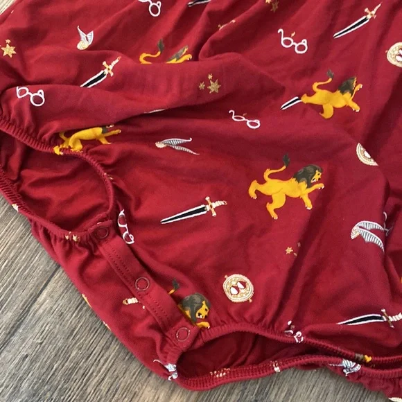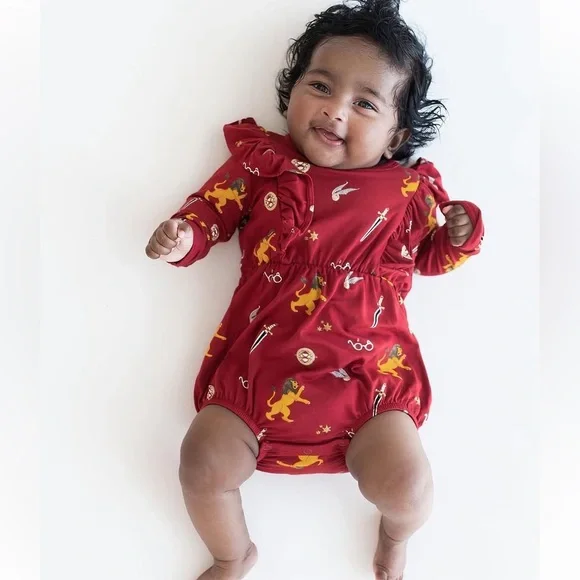 Harry Potter™ X Kyte Baby || Long Sleeve Bubble Romper"Houses of Hogwarts" is finally here! Will you show your house pride in the bravest Gryffindor™ Limited Edition, Unique Collab PrintSize: 4TPrint: Gryffindor™ (Dark Red/Burgundy with Mustard Yellow, Black, Cream & shimmery gold detail)Signature Kyte BABY Bamboo material that is buttery soft. The one piece Bubble Romper bodysuit features single snap closure at back of neck, and triple snaps at bottom for ease of getting on and off.I added stock photos and modeled picture in different color for your reference.