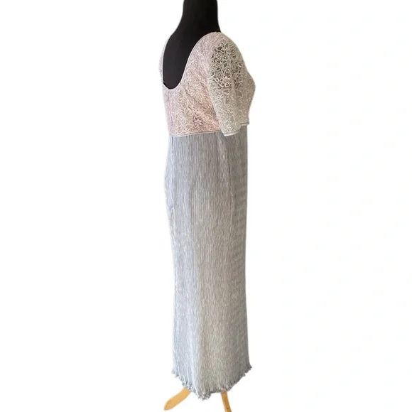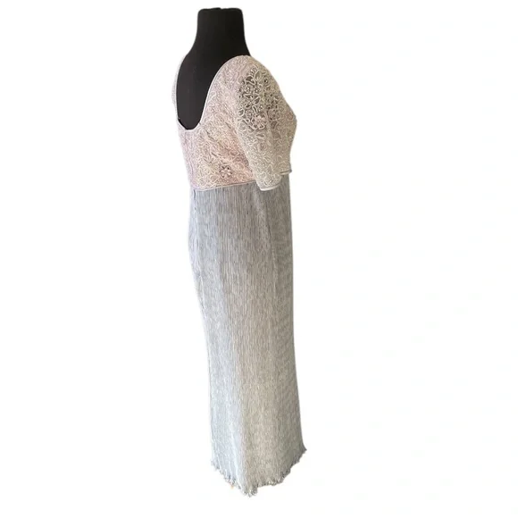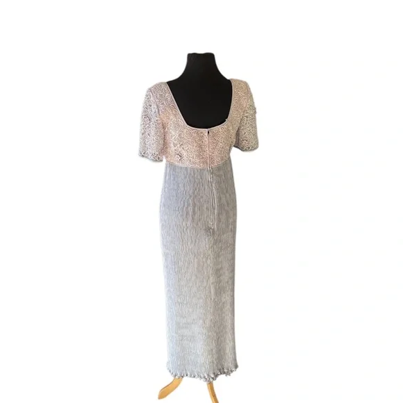 Vintage lace dress, mid calf length,mother of bride, Beautiful dress for any special occasion. Fully lined with shoulder pads, back zipper with eye hook closure. Absolutely stunning dress!!Approx. Measurements: Pit2pit 17.5" Length t54" Sleeve Length 9"In Great Vintage ConditionPet And Smoke Free HomeSTOUT