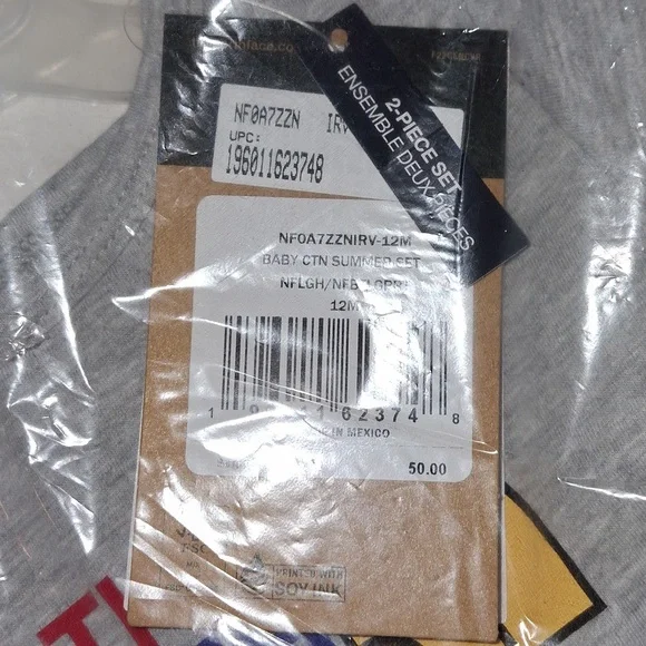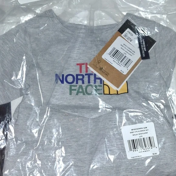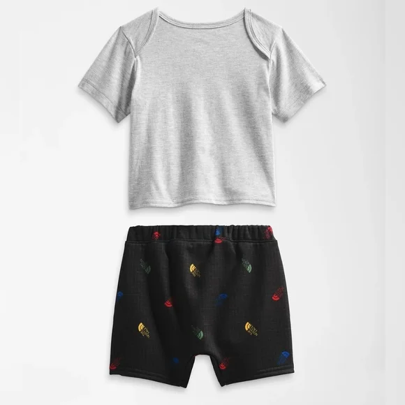 THE NORTH FACE BABY COTTON SUMMER SET 2023 Color: Grey/Black Size: 12 monthsWarm-weather exploration is better in pairs. The two-piece Baby Cotton Summer Set has the looks and breathability they need to adventure with confidence.Two-piece set for easy outfittingOverlapped fabric on back collar for easy on/offSet-in sleevesBottoms have an encased-elastic waistbandNo-hand, water-based, screen-printed graphic on chest; heat transfer logo on left thigh; GAU: no-hand, water-based, screen-printed graphic on chest and oversize logo graphic on left thighNo-hand, water-based, screen-printed graphic on chest; heat transfer logo on left thigh; GAU| no-hand, water-based, screen-printed graphic on chest and oversize logo graphic on left thigh