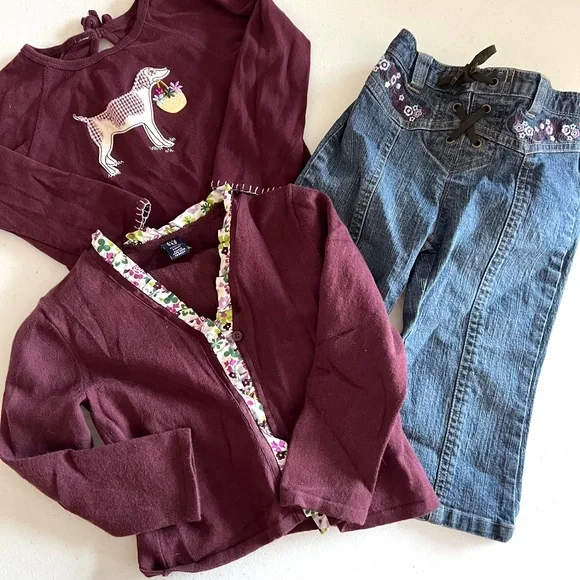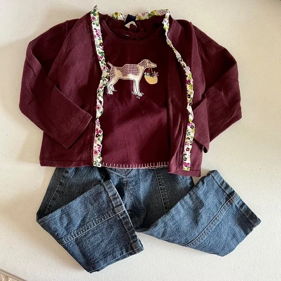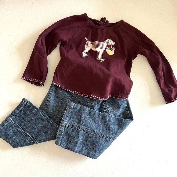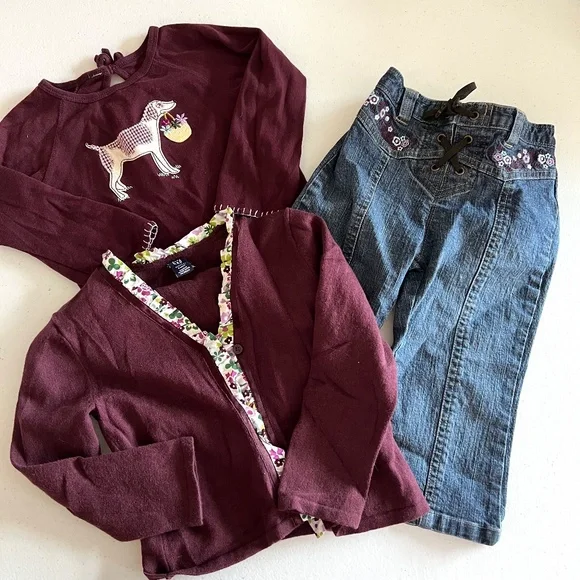 VINTAGE Baby Gap outfit. Jeans, sweater and shirt. ADORABLE!! 2T Beautiful dark plum color. Jeans are stretch. There are NO TAGS in MOST of my clothing for sale as my daughter has very sensitive skin and her comfort matters more than tags. So if you need measurements, ask PRIOR to purchase. Any questions comment below ⬇️ 🛑PRIOR TO PURCHASE🛑❤️NO REFUNDS ❤️NO RETURNS❤️ALL SALES ARE FINAL