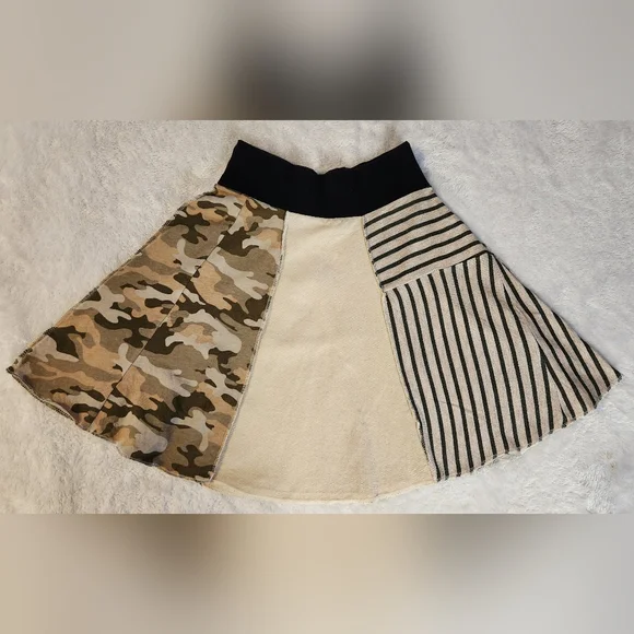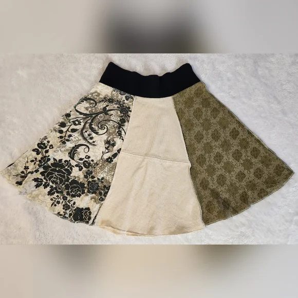 Beautiful, One-of-a-Kind, HANDMADE skirt has super cool & trendy pieced-together look. Soft cotton fabric featuring different patterns stitched together with inside-out seams. A-line panel style. Soft, lightweight, & comfortable with elastic waistband and tagless design. Made for everyday wear. Machine washable (cold water recommended). Measurements (laying flat): waist: 10.5" (stretches to about 14")length: 15.75"*This is a unique, original, wearable work of art & cannot be purchased from retailers.⭐️⭐️⭐️⭐️⭐️5-STAR RATED SELLER!!!✴️LEVEL 2 POSH AMBASSADOR!!!📨SPEEDY SHIPPER!!!NEW to POSHMARK? Enter my code: THEARTISTMOM when you sign up &will automatically give you a $10 credit toward your purchase!!!Thanks for visiting my closet & happy poshing!!! ☮️🫶🦋