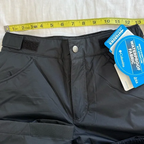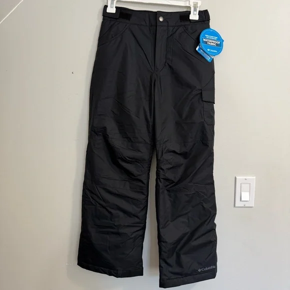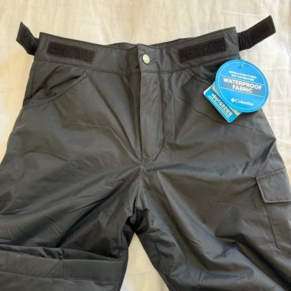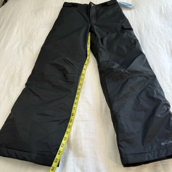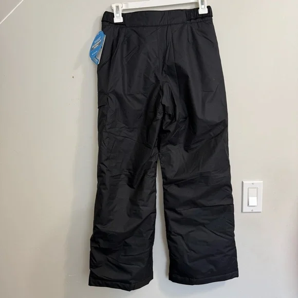 NWT Columbia Starchaser Peak II Ski Pant Girls Size Medium (10/12) - The most enthusiastic go-till-you-can't-stand-up outdoors people on the planet aren't mountaineers, and they're not lumberjacks, they're kids. And since kids are pretty much growing all the time, they need pants that keep up with them. Columbia appreciates this fact more than most, so it gave the Girls' Starchaser Peak II Pant outgrown cuffs to keep up with constant growth. Just lengthen the pants by a full two inches when the pants start to look like capris. These insulated snow-stoppers feature Columbia's Omni-Shield water resistant treatment to keep her dry as snow flurries fly. The adjustable waist band and adjustable boot gaiters go a long way to making sure she's still dry when she comes back in from playing outside. The polyester insulation is nice and lofty, and the soft taffeta lining easily slides on over her layers. We all know that kids put their gear through unimaginable tortures, so the reinforced knees are a helpful way to improve the durability.•Omni-Shield treatment blocks out snow and water in the worst storms•Polyester insulation traps and retains heat for longer play sessions•Reinforced knee panels stand up to wear and tear that occurs daily•Outgrown cuffs extend the legs up to two inches for multi year use•Adjustable waist pull tabs accommodates the inevitable growth spurt•Adjustable boot gaiters keep snow out of boots for comfortable wearBin: 10