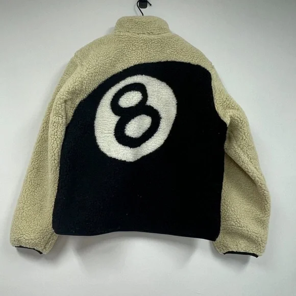 •Brand: Stussy•Item: 8 Ball Sherpa Fleece Reversible Jacket•Color: Cream and Black•Size: Medium•Design: Features a Sherpa fleece exterior with a sleek black contrast pocket and zipper detailing•Reversible: Offers a versatile two-in-one design for style flexibility•Condition: New in original packaging•Special Features: Rare and sought-after item, perfect for collectors or streetwear enthusiastsPerfect gift for the holidays. Will be shipped next day