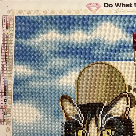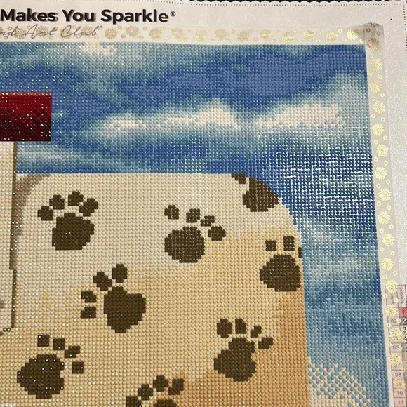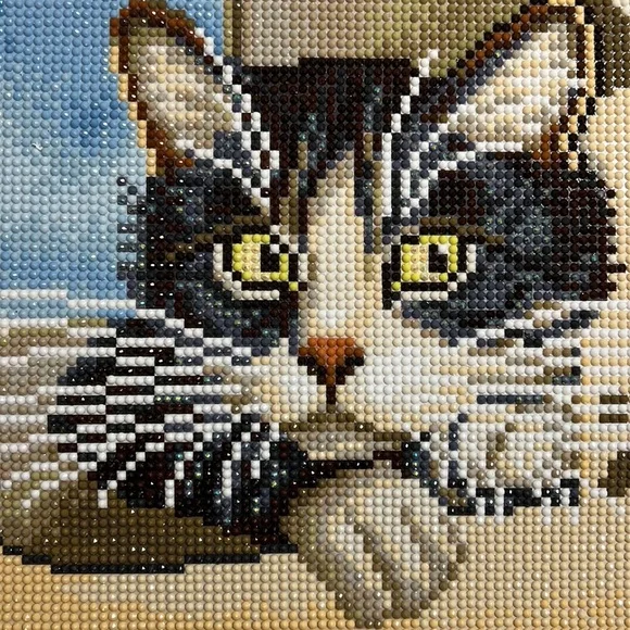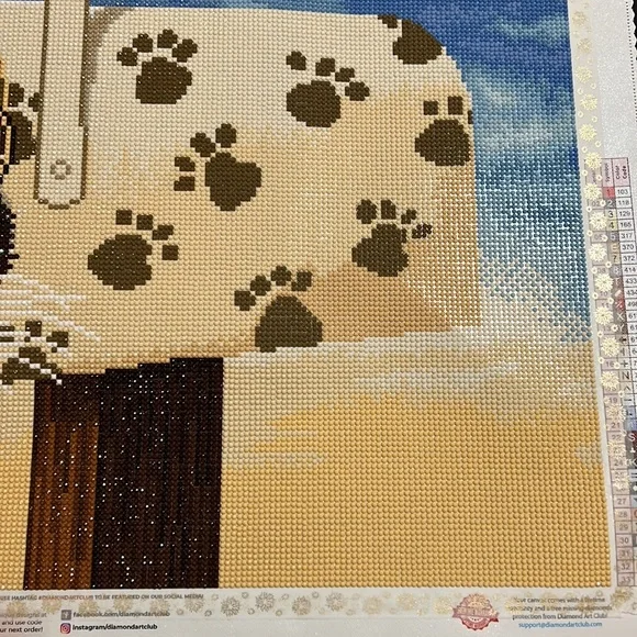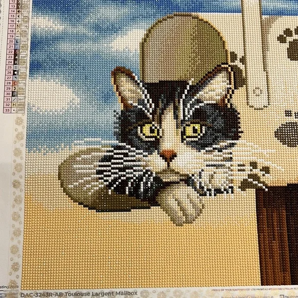 COMPLETED Diamond Art Club PictureToulouse Largent Mailbox Artist Lowell Herrero There are three tiny holes on top of the edge of the canvas where I placed nails to hang it on my wall.Two marks on the back of the canvasI try to place all the drills as straight as possible however some areas may not be straight. I placed washi tape around the picture to help prevent hair and dust attaching to the glue however their may be some within the picture as it’s a glue background. The extra diamonds do come with it in case some fall off. Approximate measurements laying flat:Canvas 25” x 19 3/4”Picture only area 22” x 16 1/2” This is Completed Please view pictures, video and ask all questions prior to buying. Reasonable offers considerCat friendly homeSorry no trades