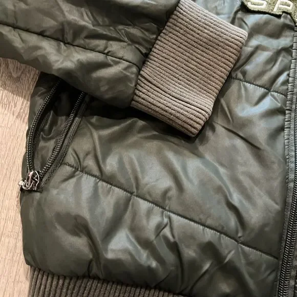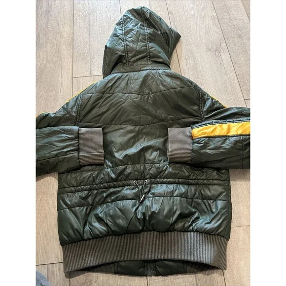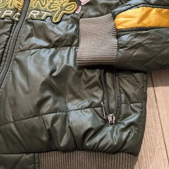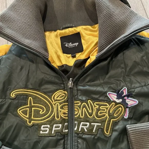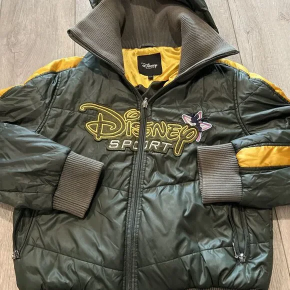 This rare vintage 90s Disney Mickey Mouse hooded bomber jacket is a must-have for any Disney fan! The jacket is made of cotton-poly material and comes in a multicolor olive fee design. It is a size Large and perfect for teens. The jacket features a hood and is part of the Disney Character Fashions brand.This jacket is perfect for anyone who loves 80s fashion or vintage Disney. It is pre-owned but still in great condition. The jacket was made in the United States and is part of the Coats, Jackets & Vests category. The model is Mickey Mouse and the character family is Disney. Don't miss your chance to own this amazing piece of Disney history!Ultra rare Disney Sports 90s Jacket! Retails over $120 and resells over $200! Vintage and beautiful! Can pass for new! Perfect for fans or collectors! Perfect for your kids trip to Disneyland! Priced to sell!