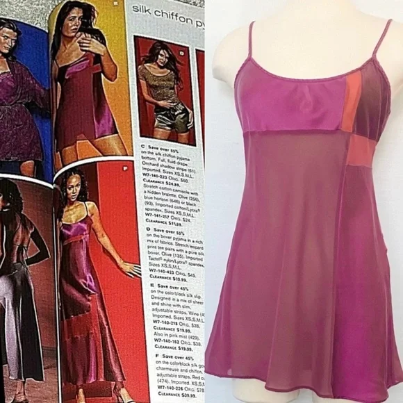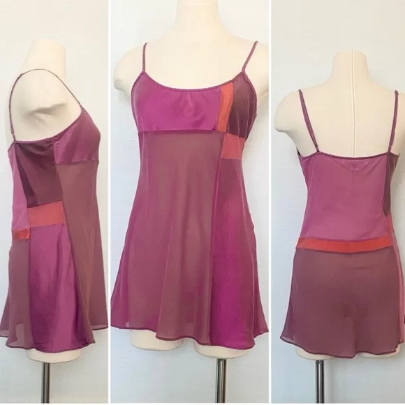 Unique Colorblock Negligee Babydollby Victoria’s Secret100% SilkSilky satin weaveDelicate Chiffon Brick Red Mulberry Purple Romantic RARE silhouette As Featured in VS 2000 Fall CatalogVintage Pink Satin label2000 TagAdjustable strapsLength: 32.5” (+/- adjustable straps)Pit to pit: 18.5”Waist: 19”Size LargeLove Silk Victoria’s Secret Lingerie? More unique pieces available... listing new items weekly!Luxury Short Nightgown Y2K Hollywood Glamour Peignoir Evening Glam VS Pajama
