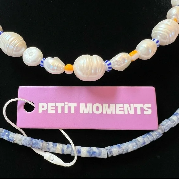 2PC NEW NWT Petit Moments Canna Necklace & Petit Moments Mineral Beaded Necklace LOTLove these - they’re lovely & perfectly dainty! Sold together - will not separate. Perfect for stacking! No branded jewelry pouch includedCANNA NECKLACE IN MULTI DETAILS:* $75 MSRP* Fresh Water Pearls and beads* Lobster clasp closure* Measures approx 13" in length with a 2" extenderMINERAL BEADED NECKLACE DETAILS:* SOLD OUT & HTF * $75 MSRP * Lapis Lazuli * Gold plated lobster clasp closure* Measures approx 16” in length with a 4” extenderQuestions? Leave a comment below.
