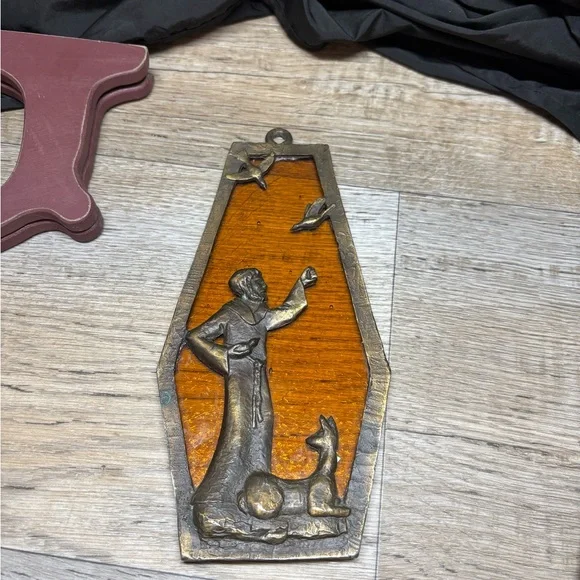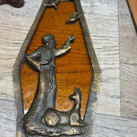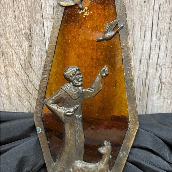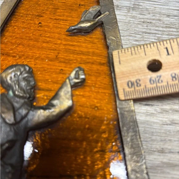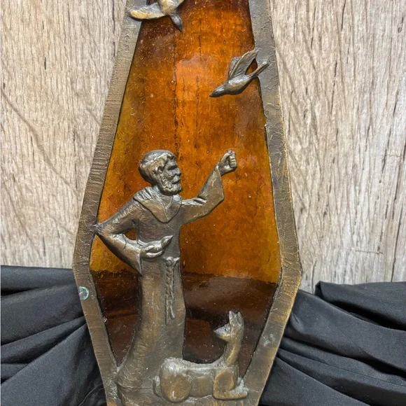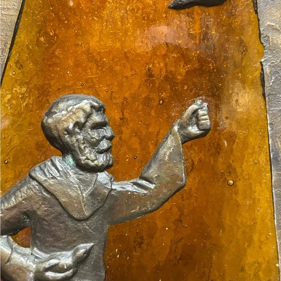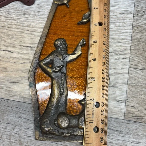 This piece of beautiful art work, has been packed away for many many years!! Leaving the cleaning of the brass to the new owner. Please note,, a bird is missing, should be one on his hand.Please, reference all photos for details and description….Fast shipping, smoke free home and well packaged. Make offers!!Estate clean out!! Thanks for looking and checkout my other listings!L31